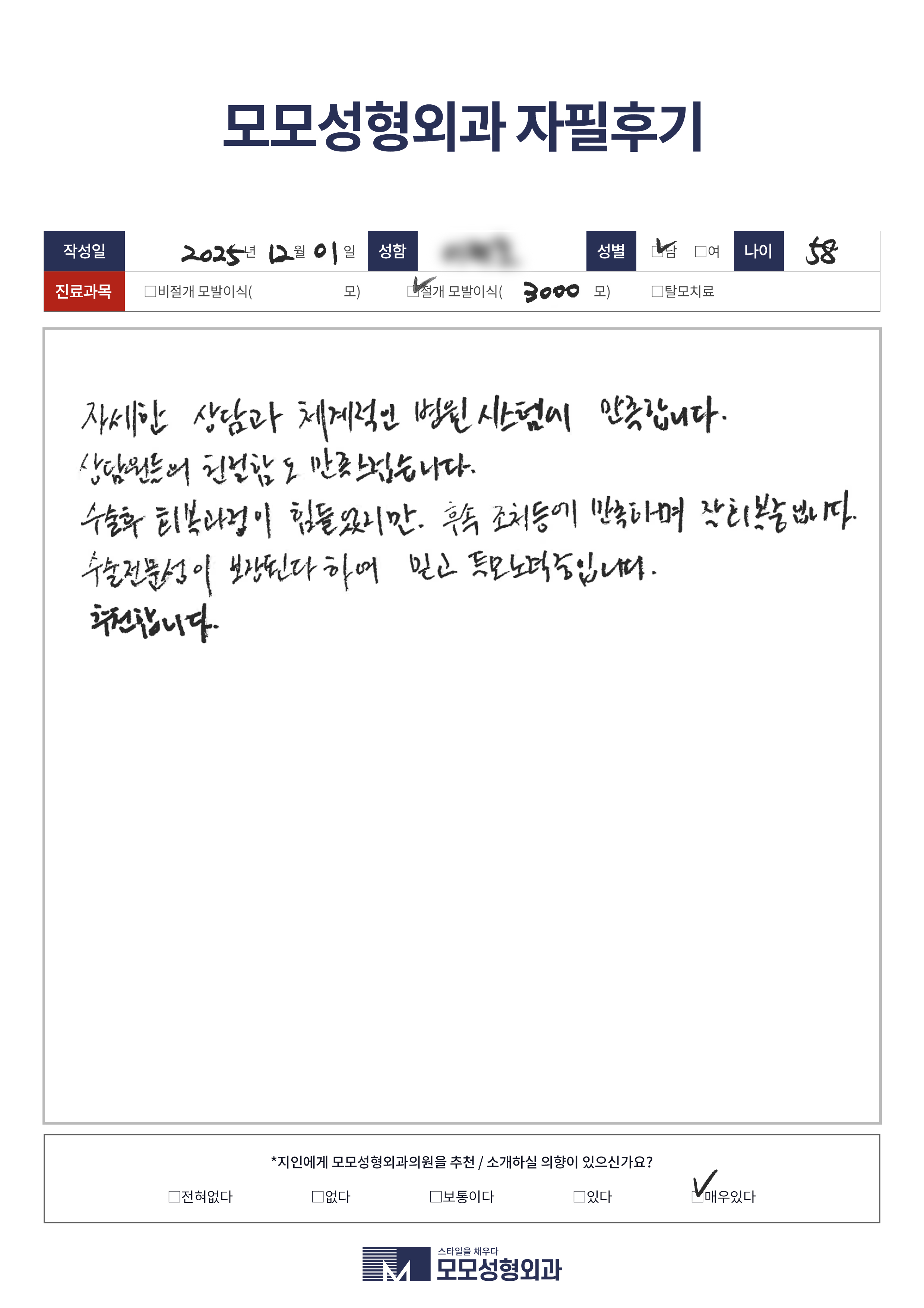 [50대]절개모발이식3000모, M자이마