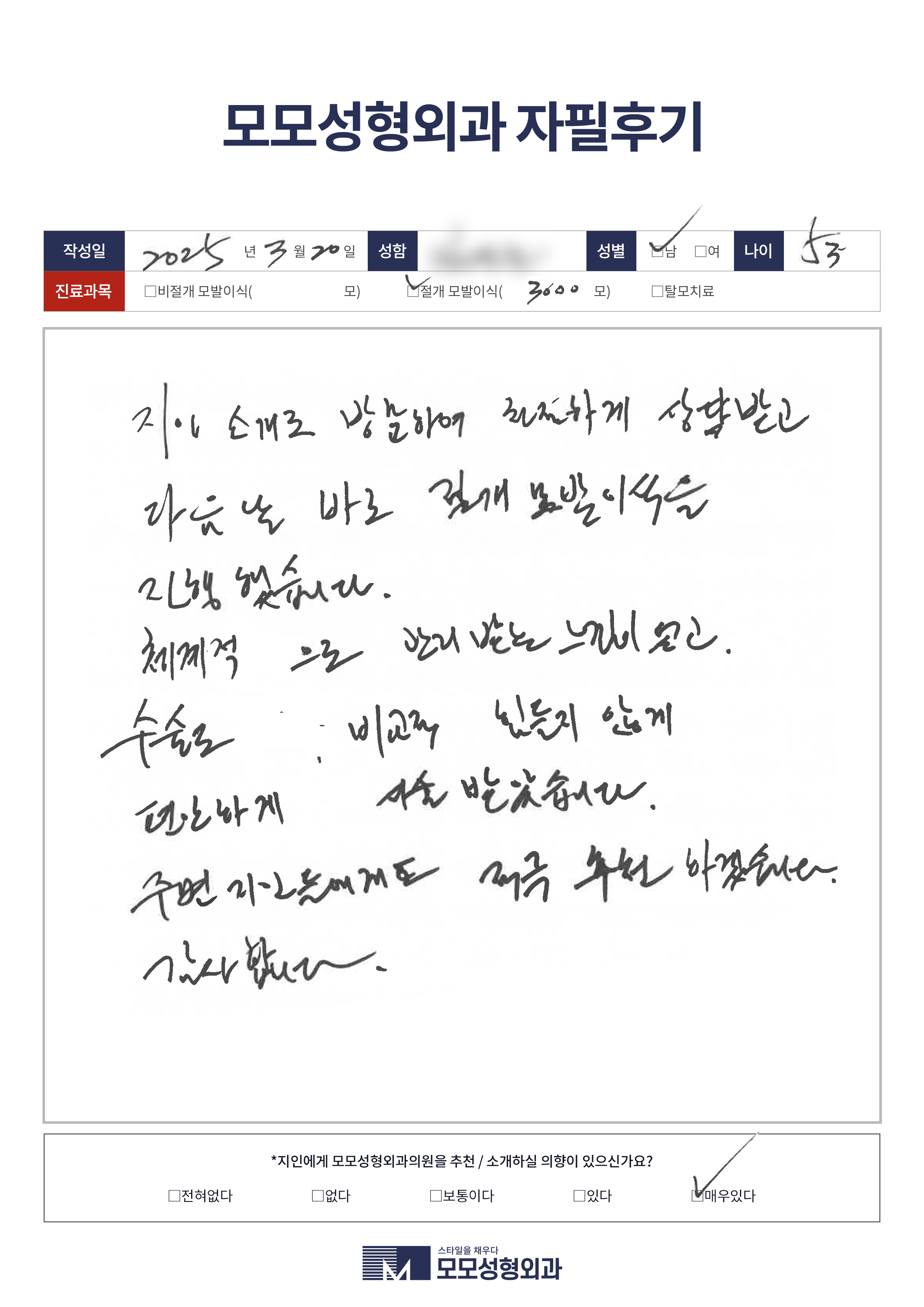 [20대]비절개모발이식3500모이상, M자이마