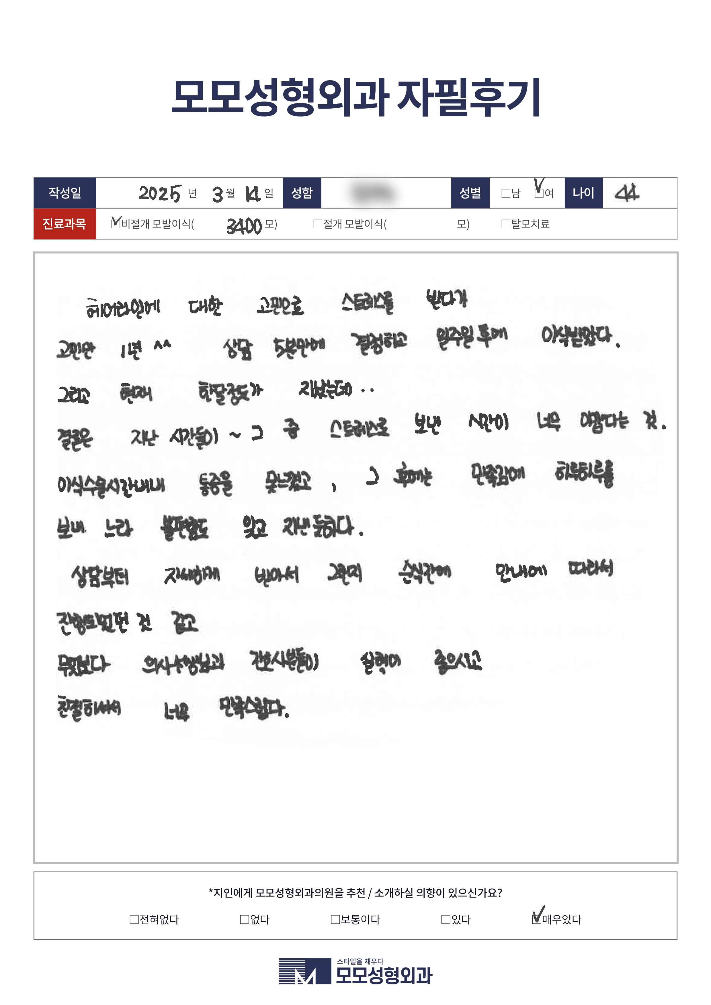 [40대]비절개모발이식3000모이상, 헤어라인