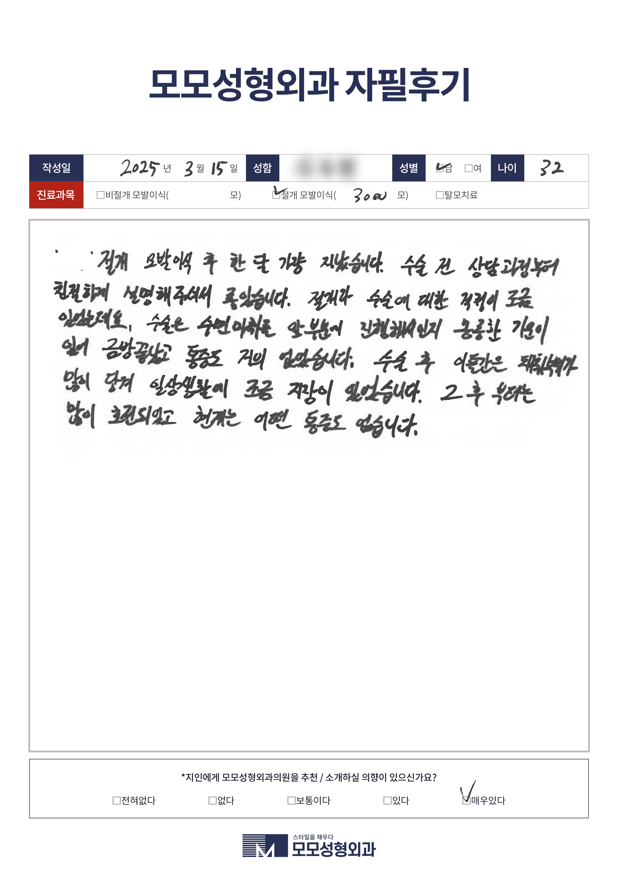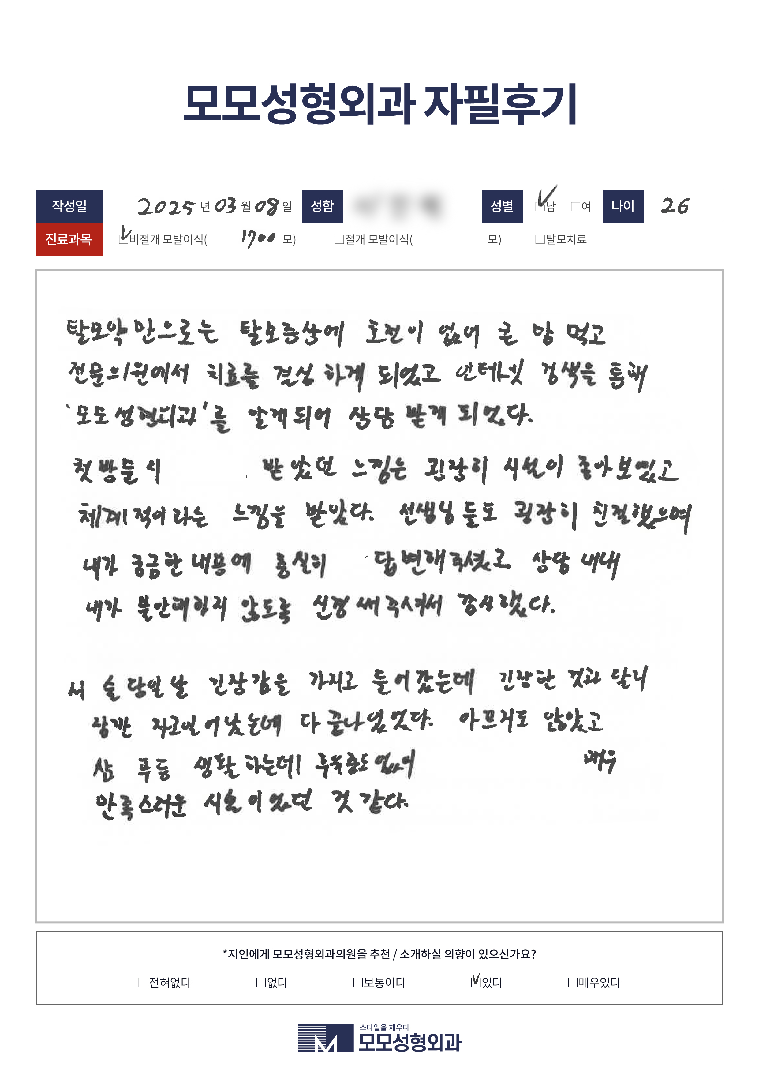 [20대]비절개모발이식1500모이상, M자이마