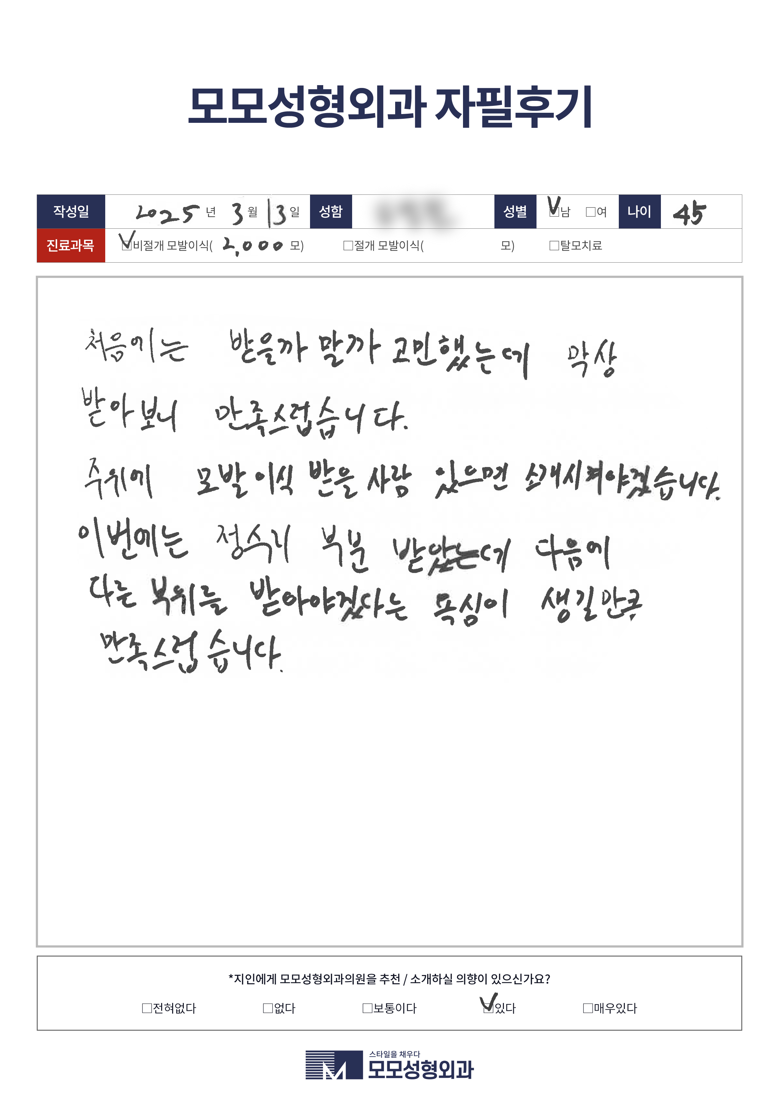[40대]비절개모발이식2000모이상, M자이마