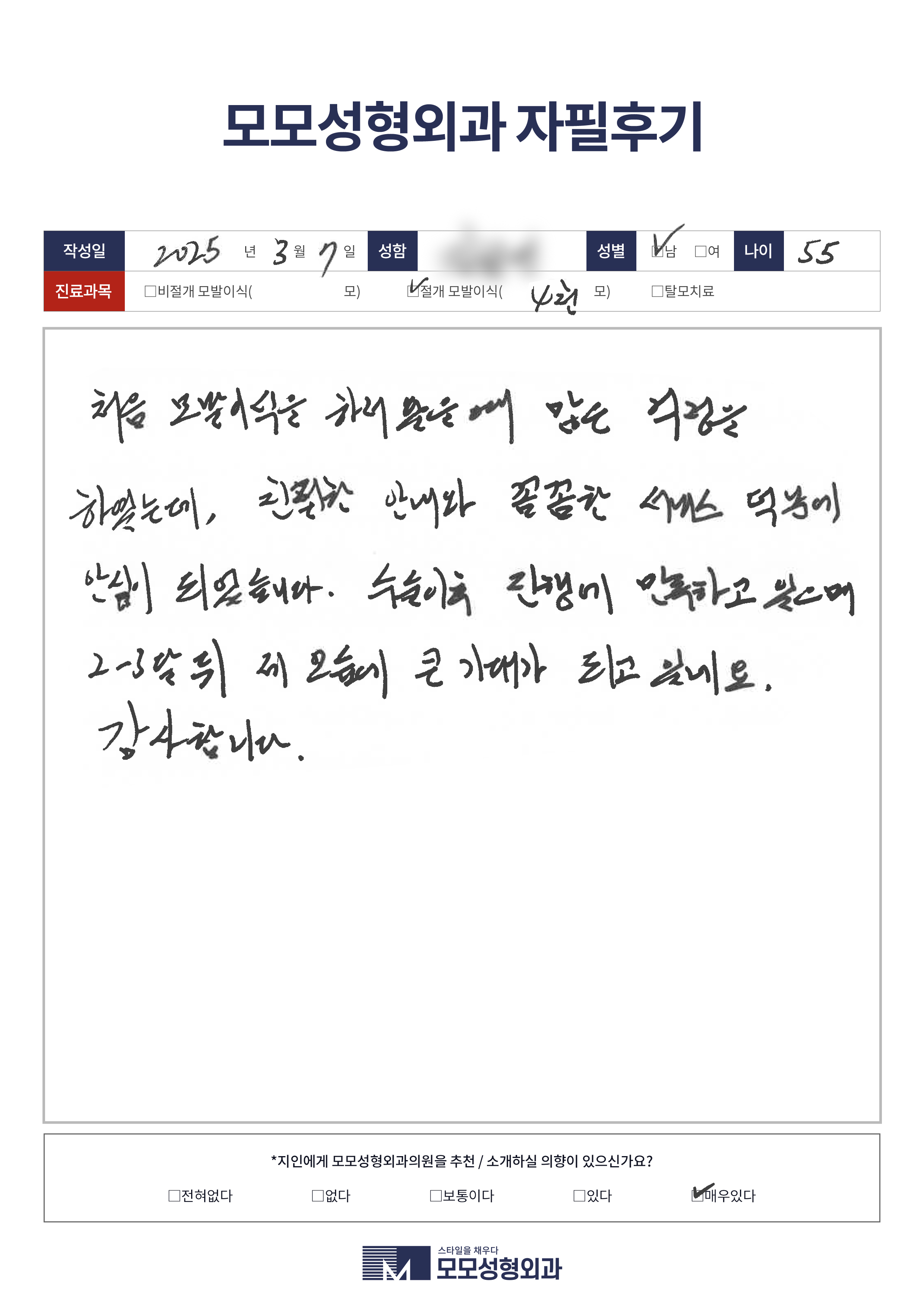 [50대]비절개모발이식1000모, 헤어라인