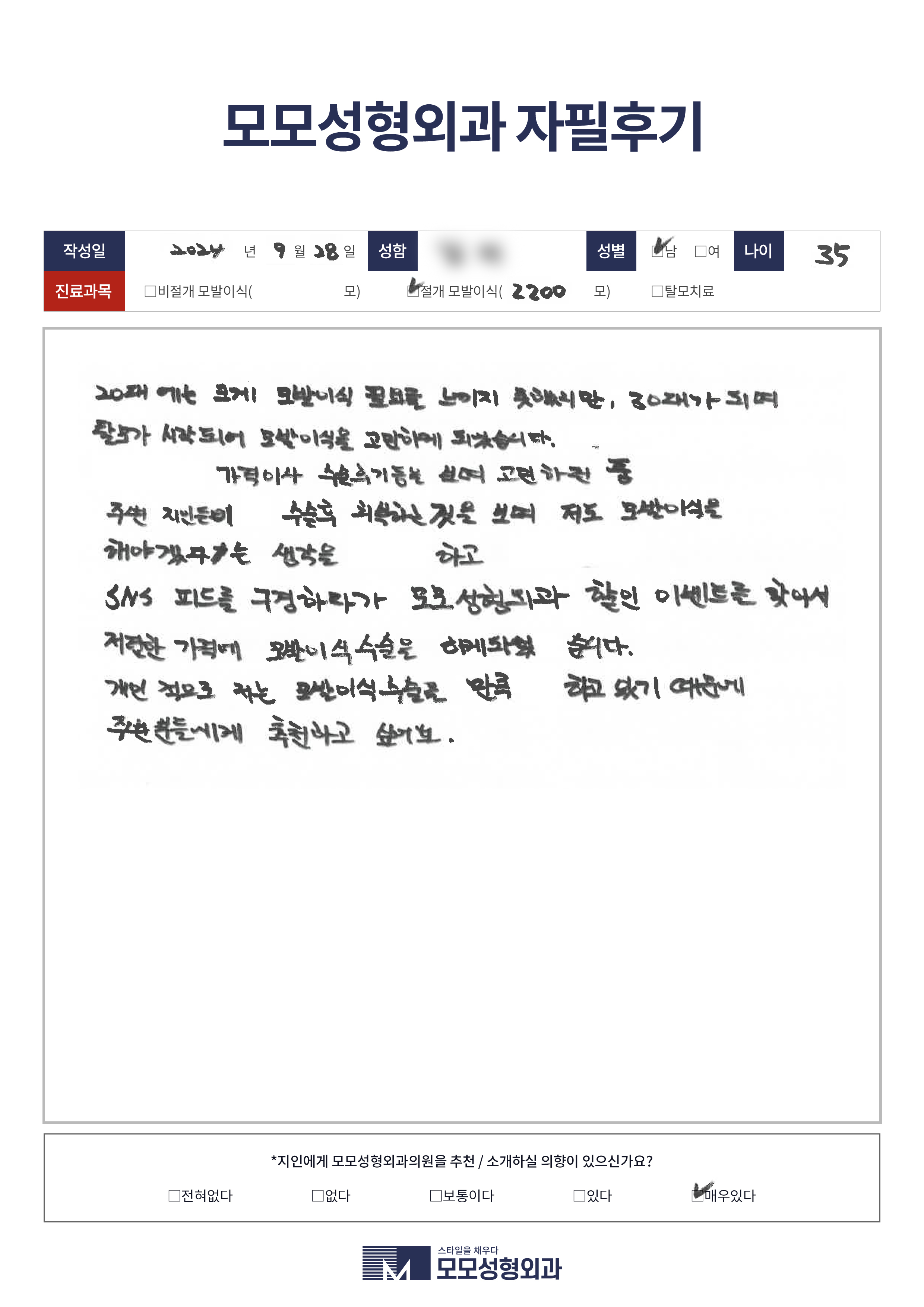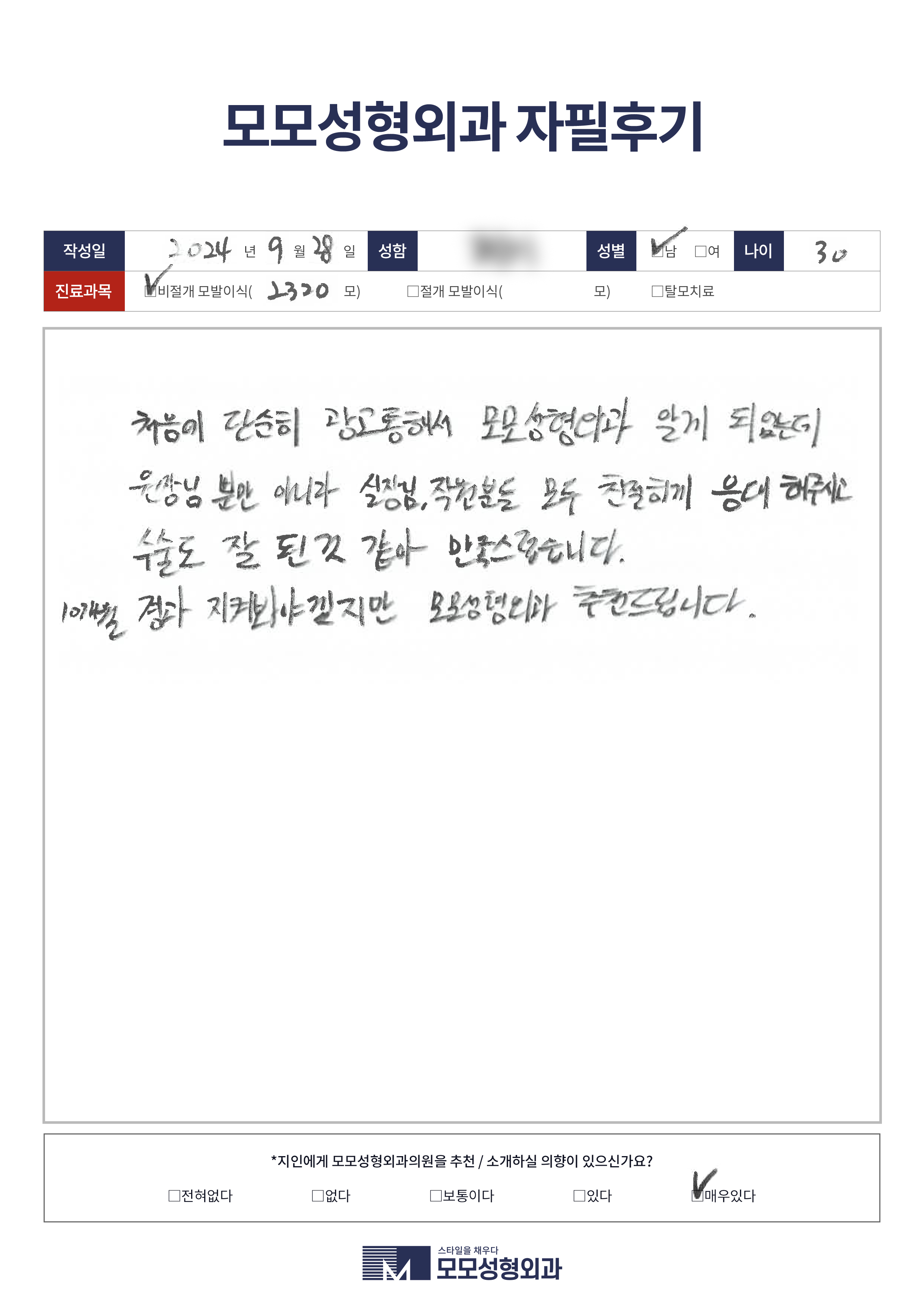 [30대]절개모발이식2000모, M자이마