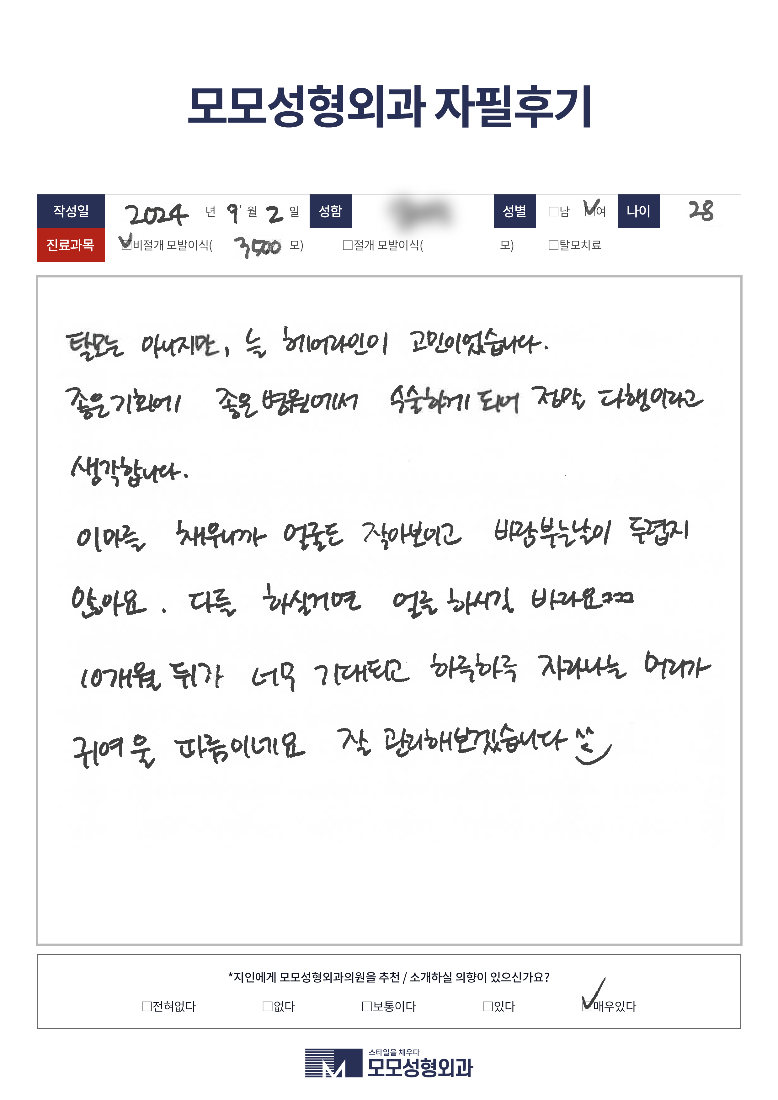 [20대]비절개모발이식3000모,