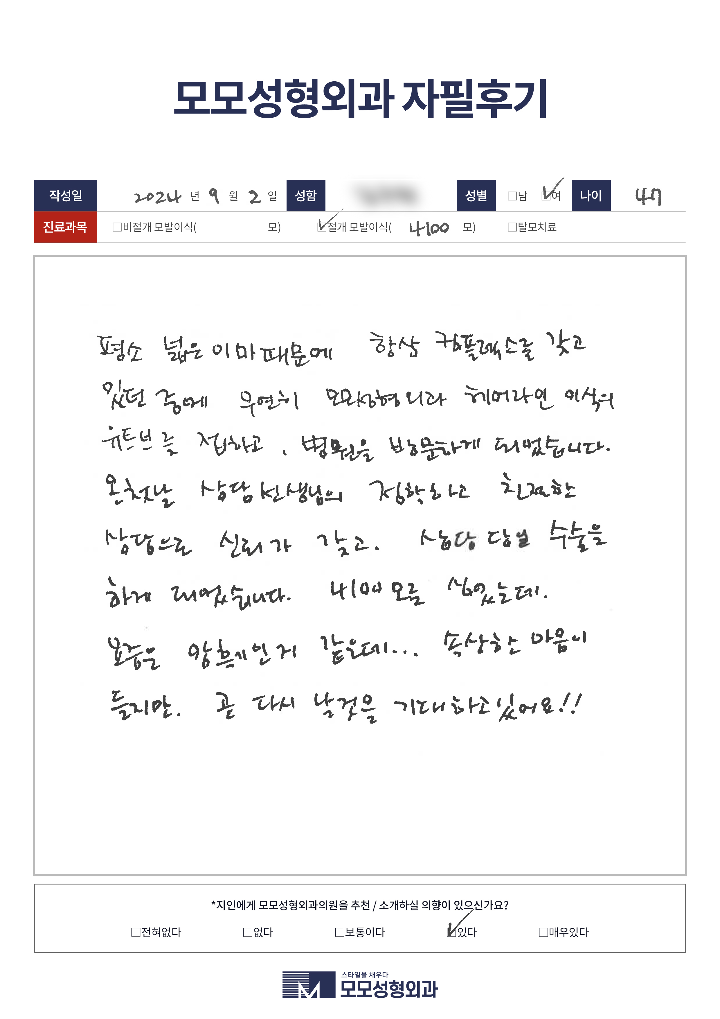 [40대]절개모발이식4000모이상,