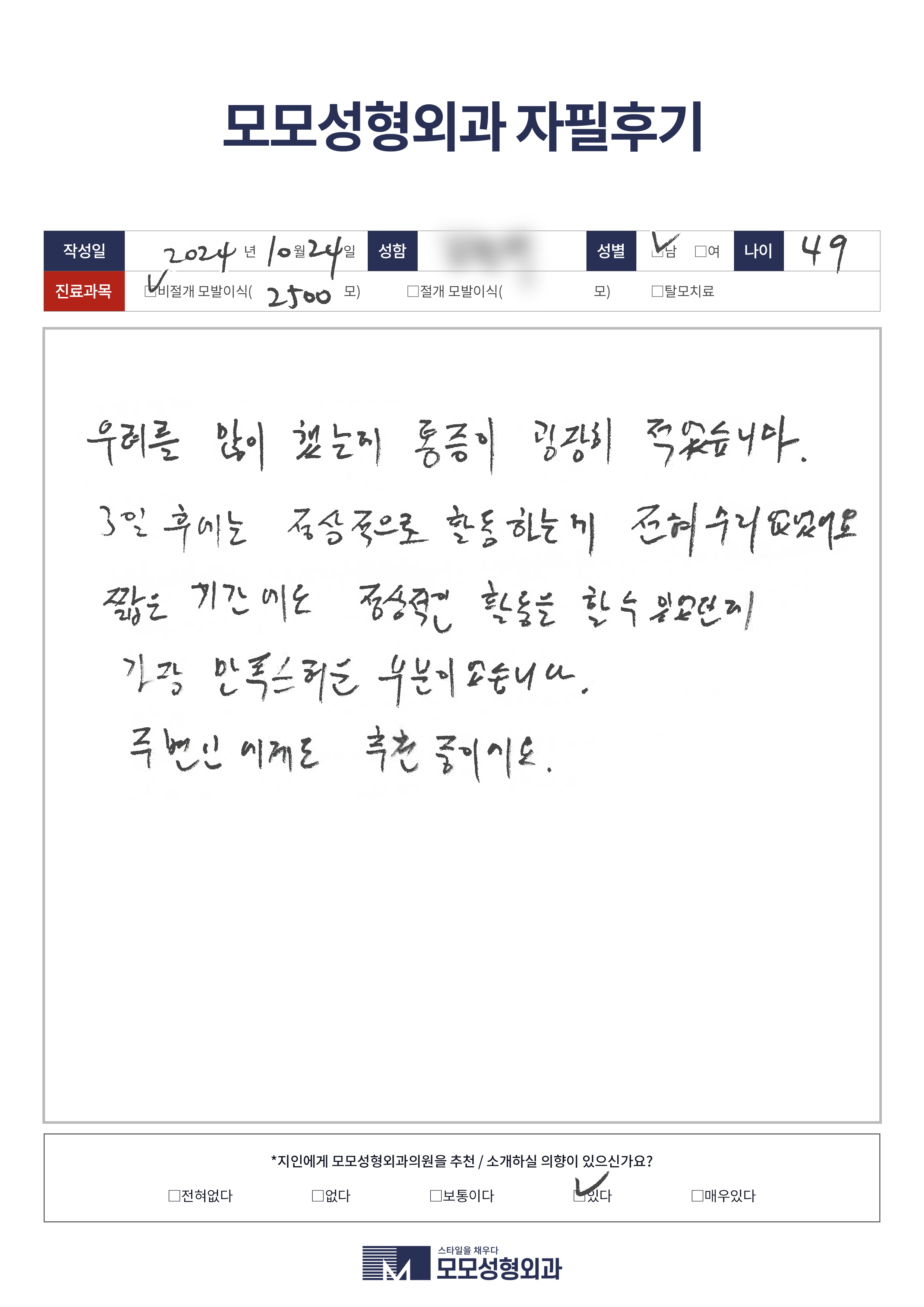 [40대]비절개모발이식2500모, M자이마
