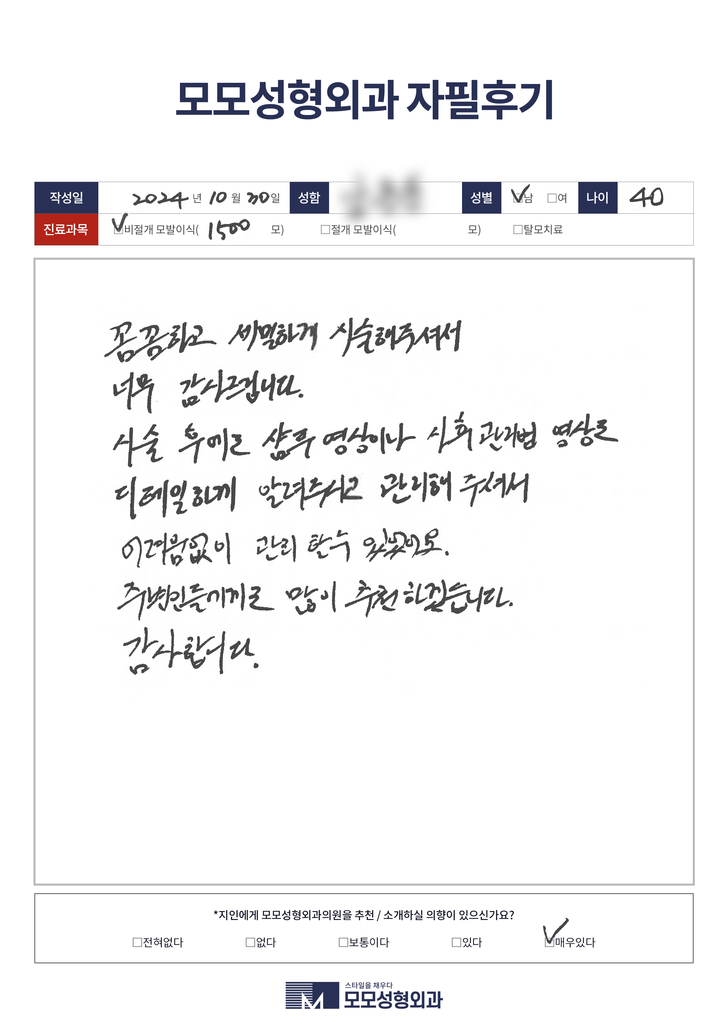 [40대]비절개모발이식1500모, M자이마