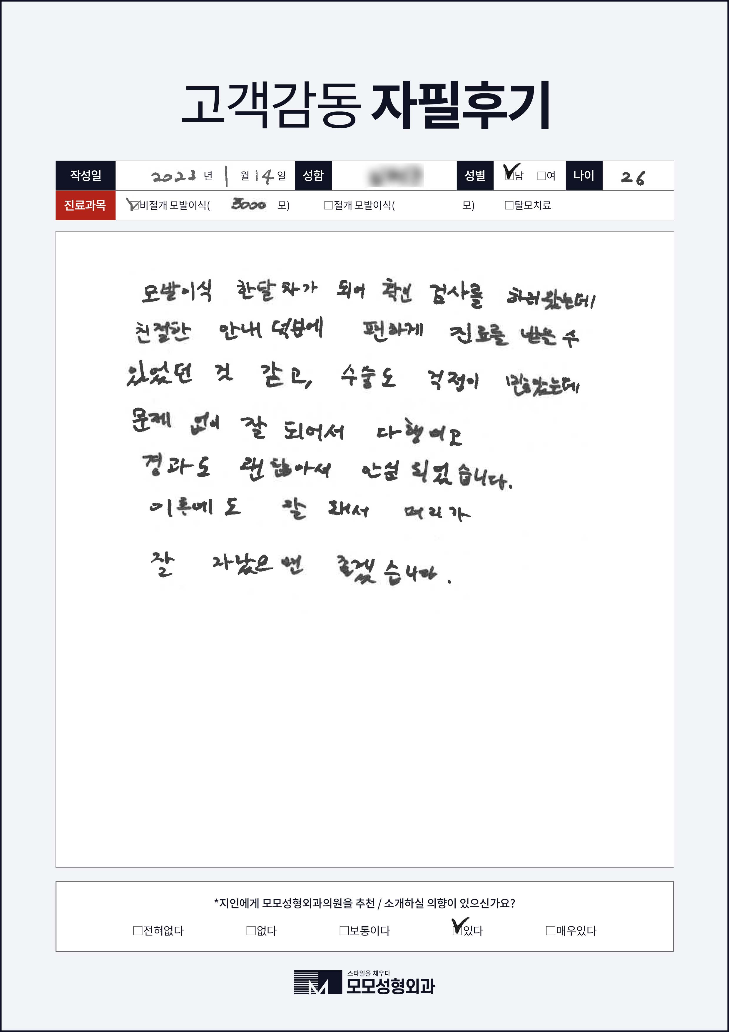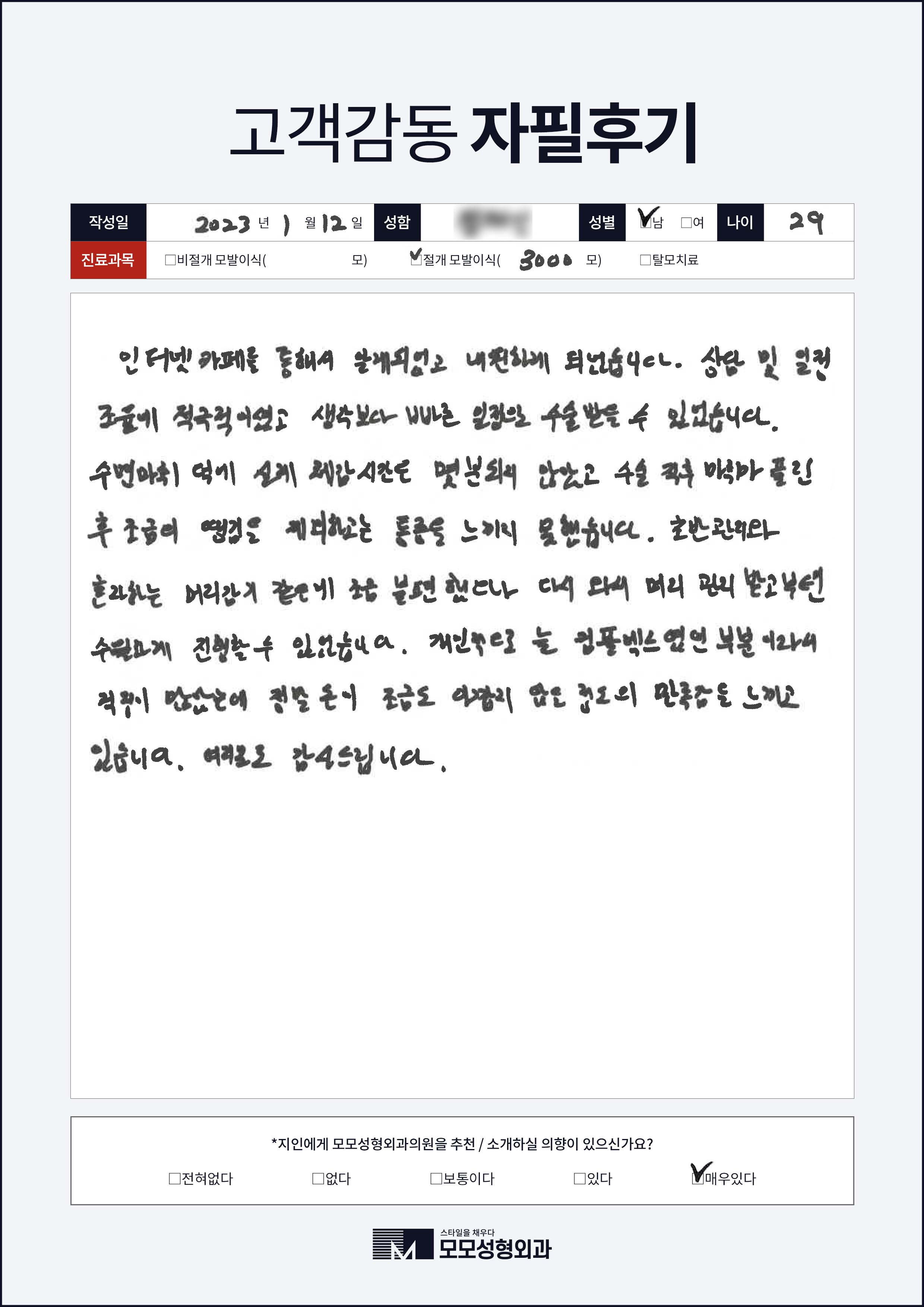 [20대]비절개모발이식3000모, M자이마