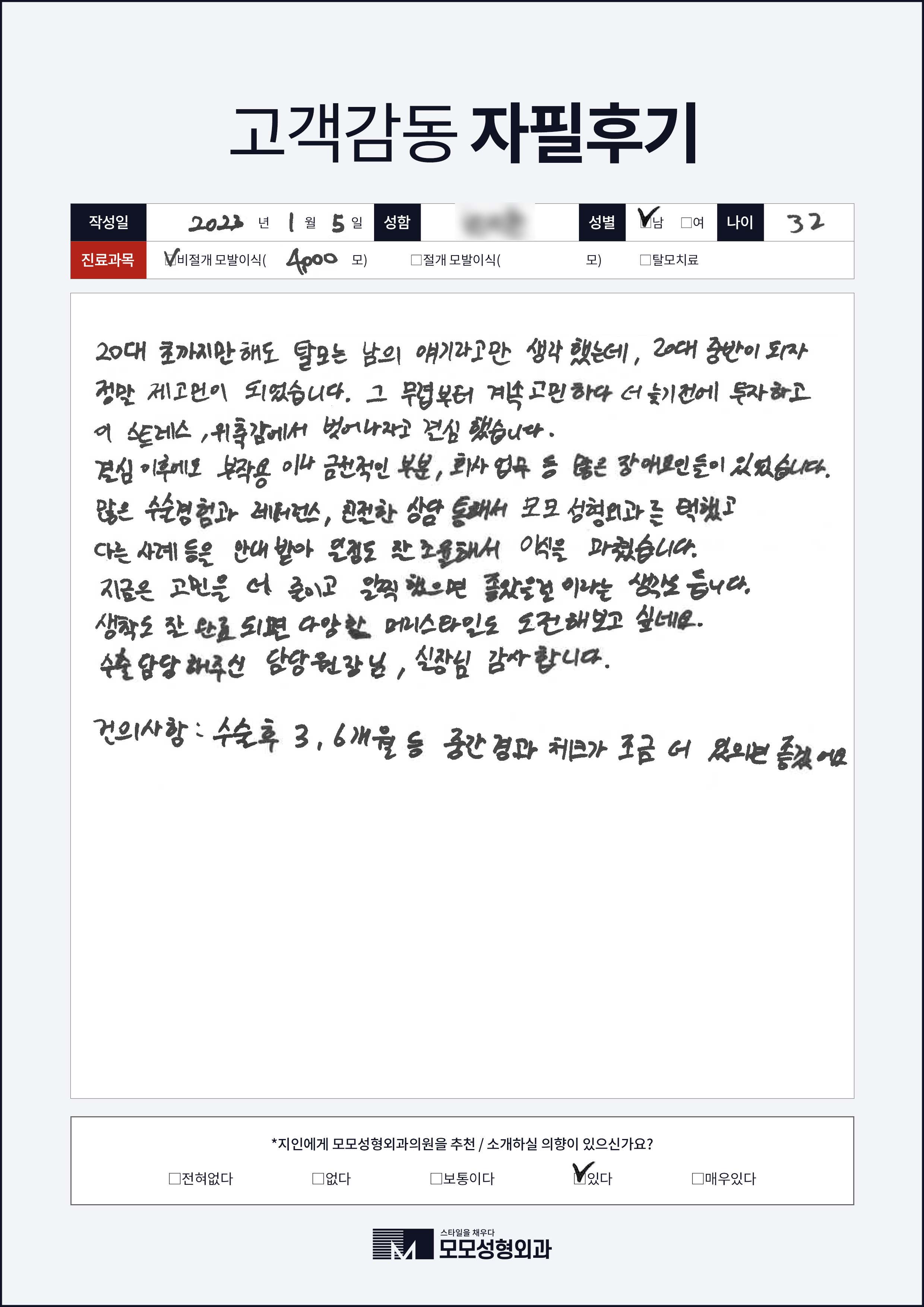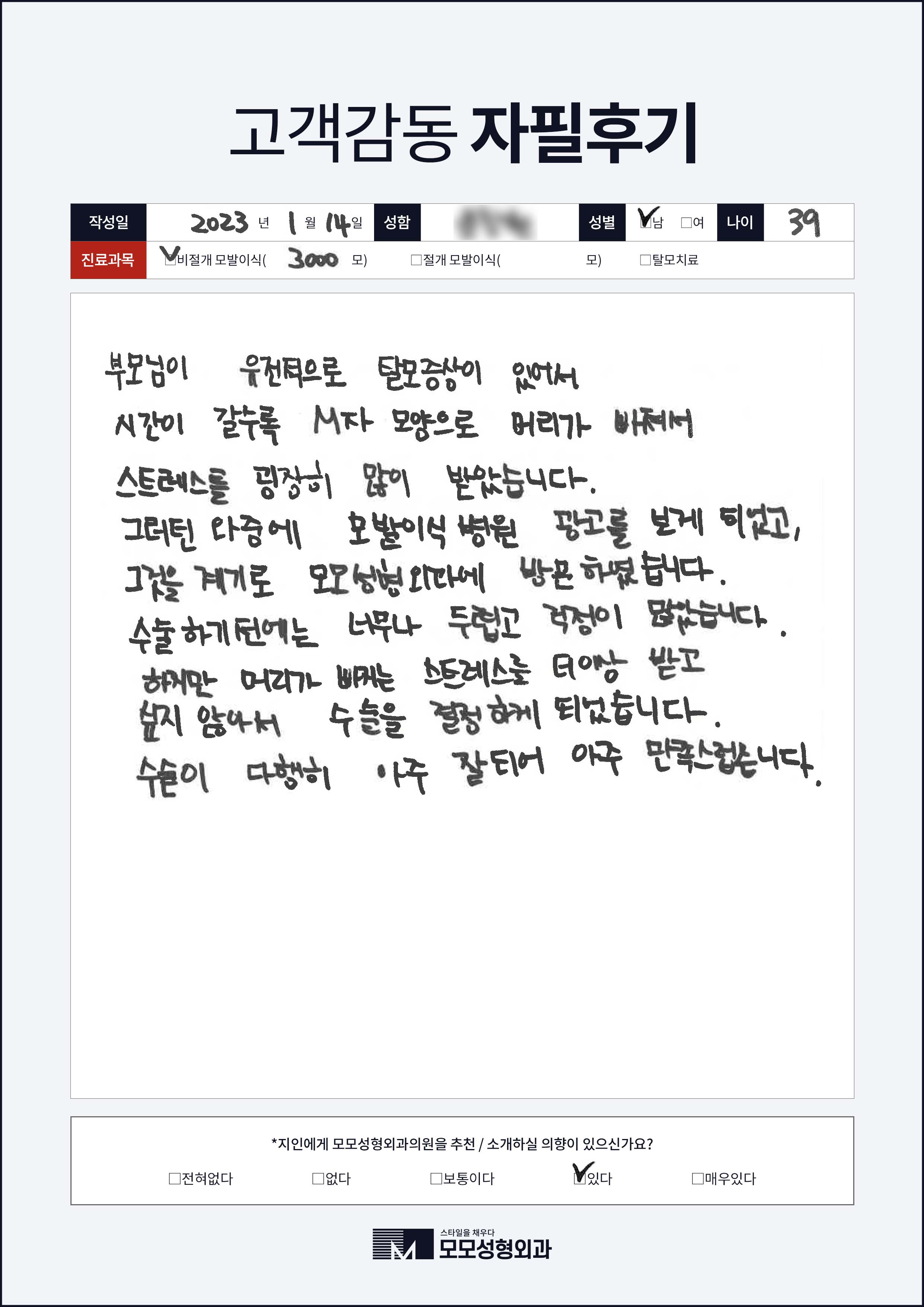 [30대]비절개모발이식4000모이상, M자이마