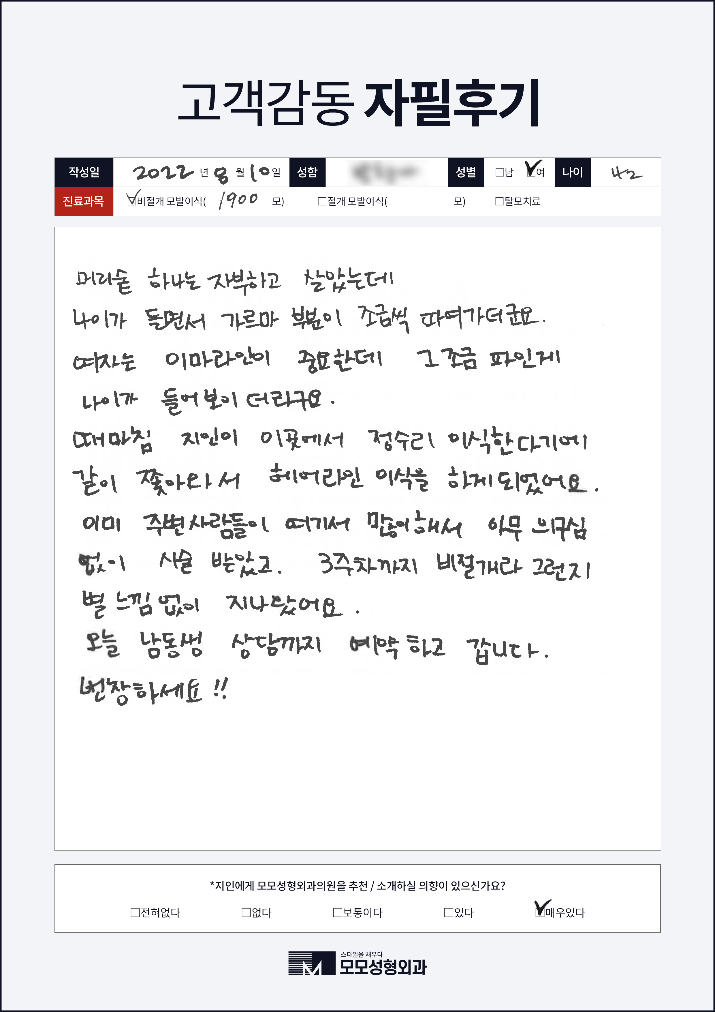 [40대]비절개모발이식