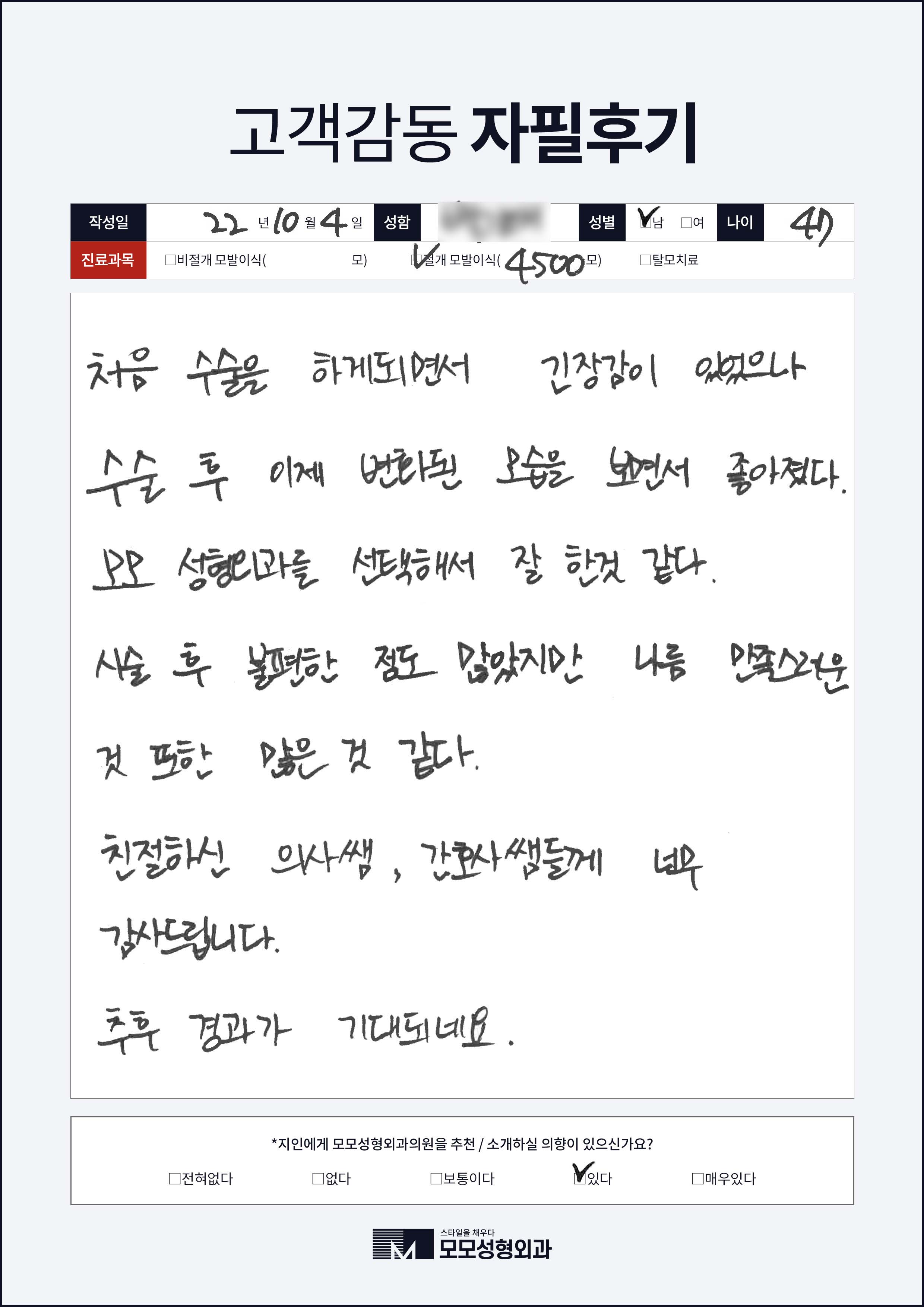 [40대]절개모발이식