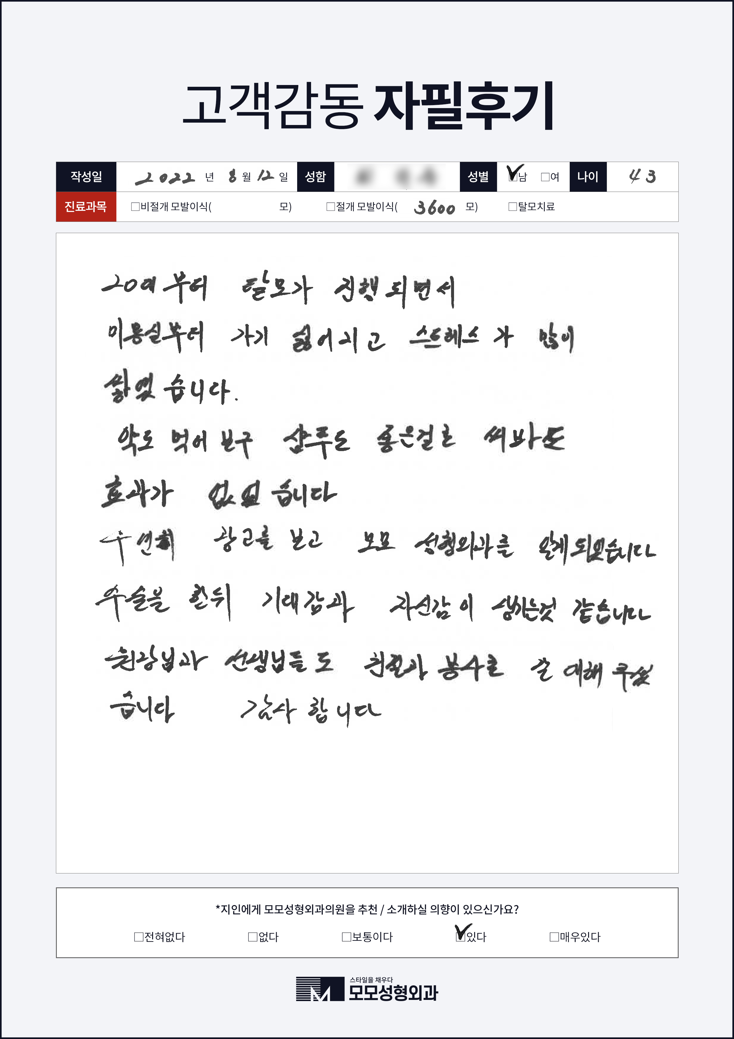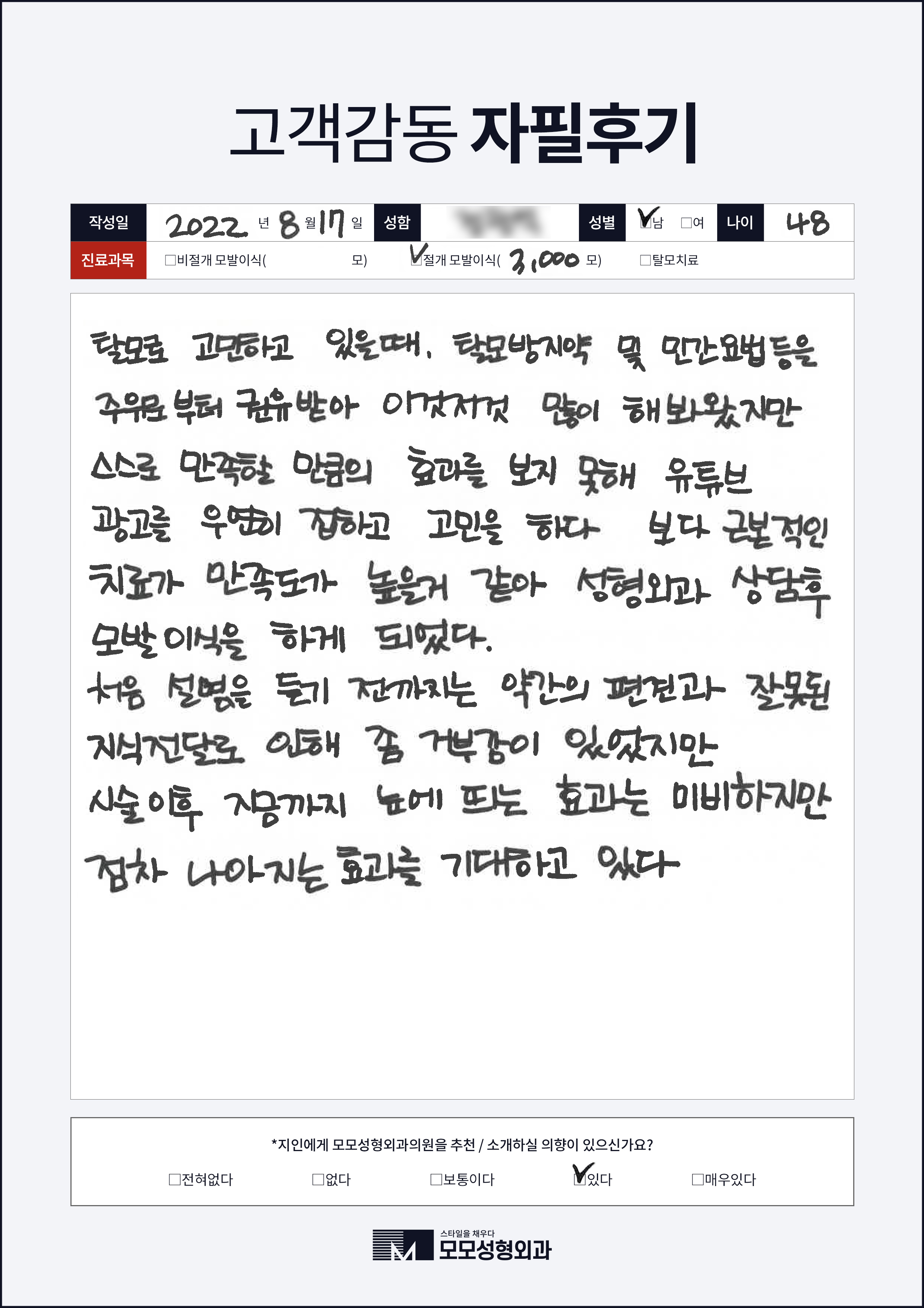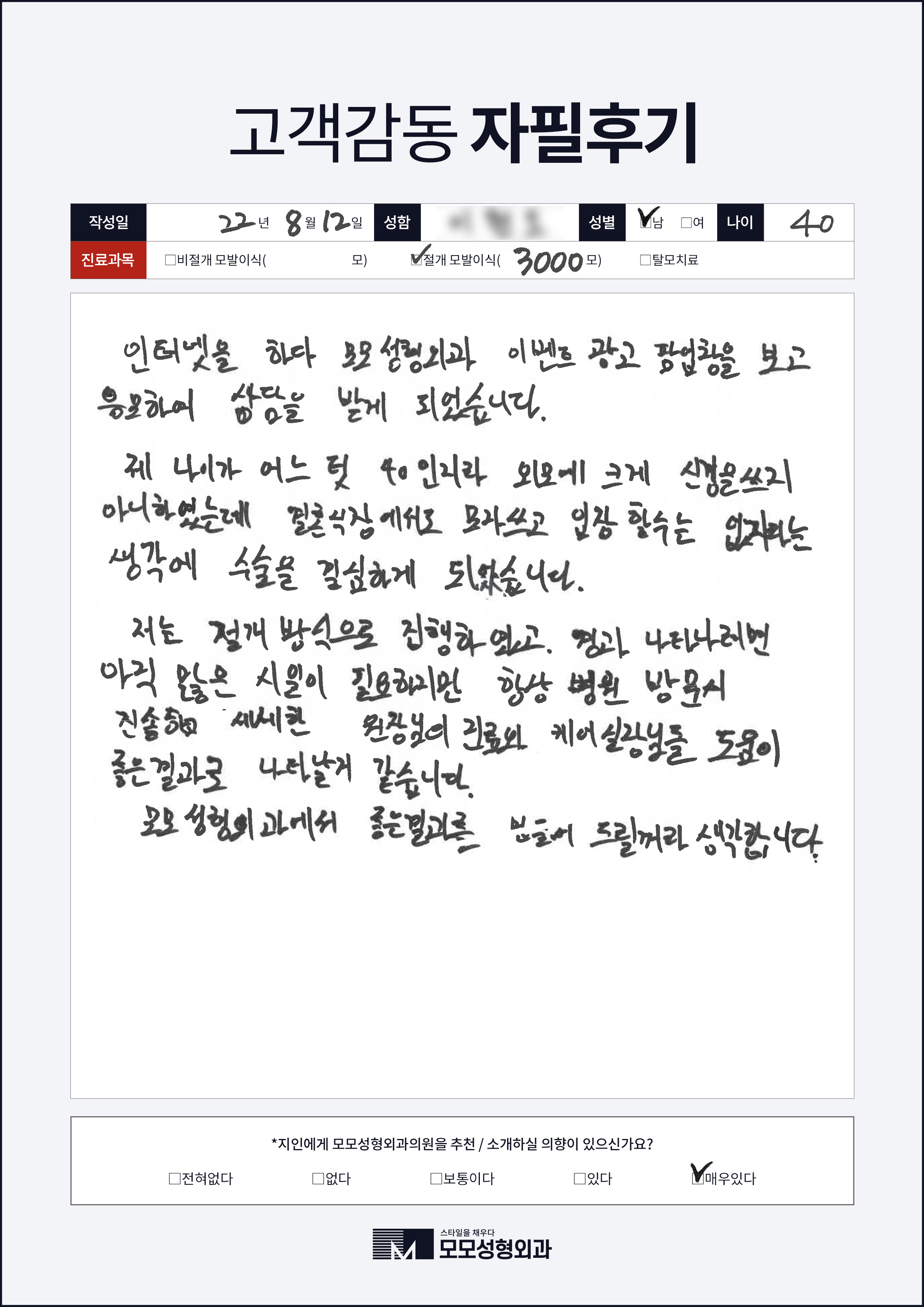 [40대]절개모발이식3000모, M자이마