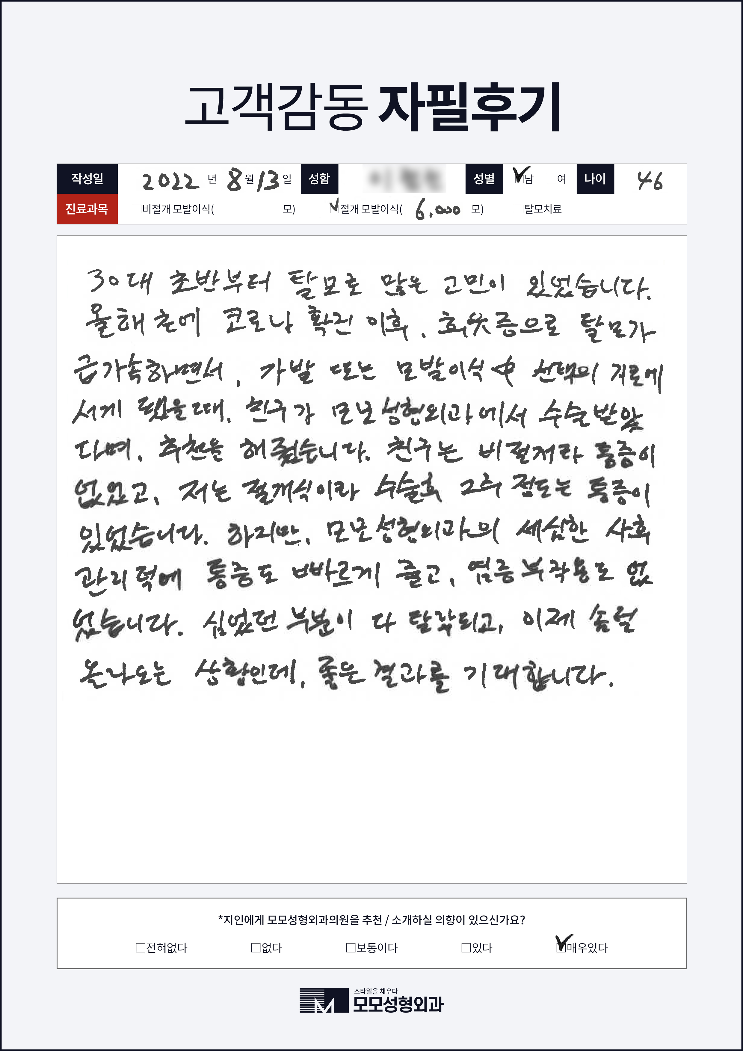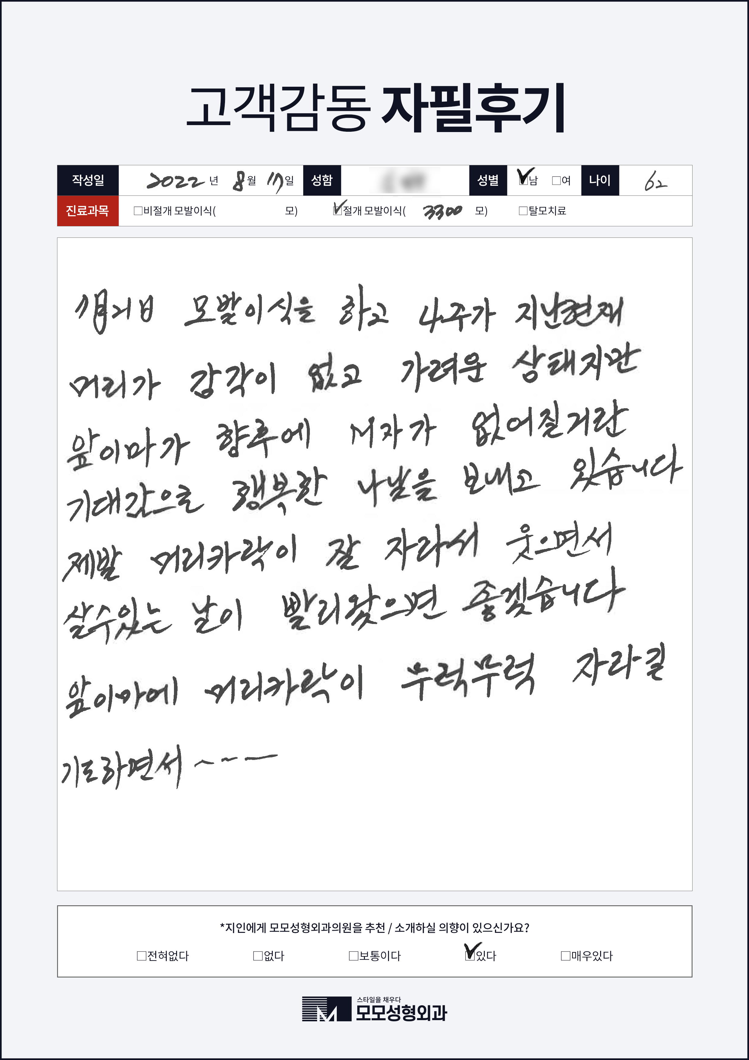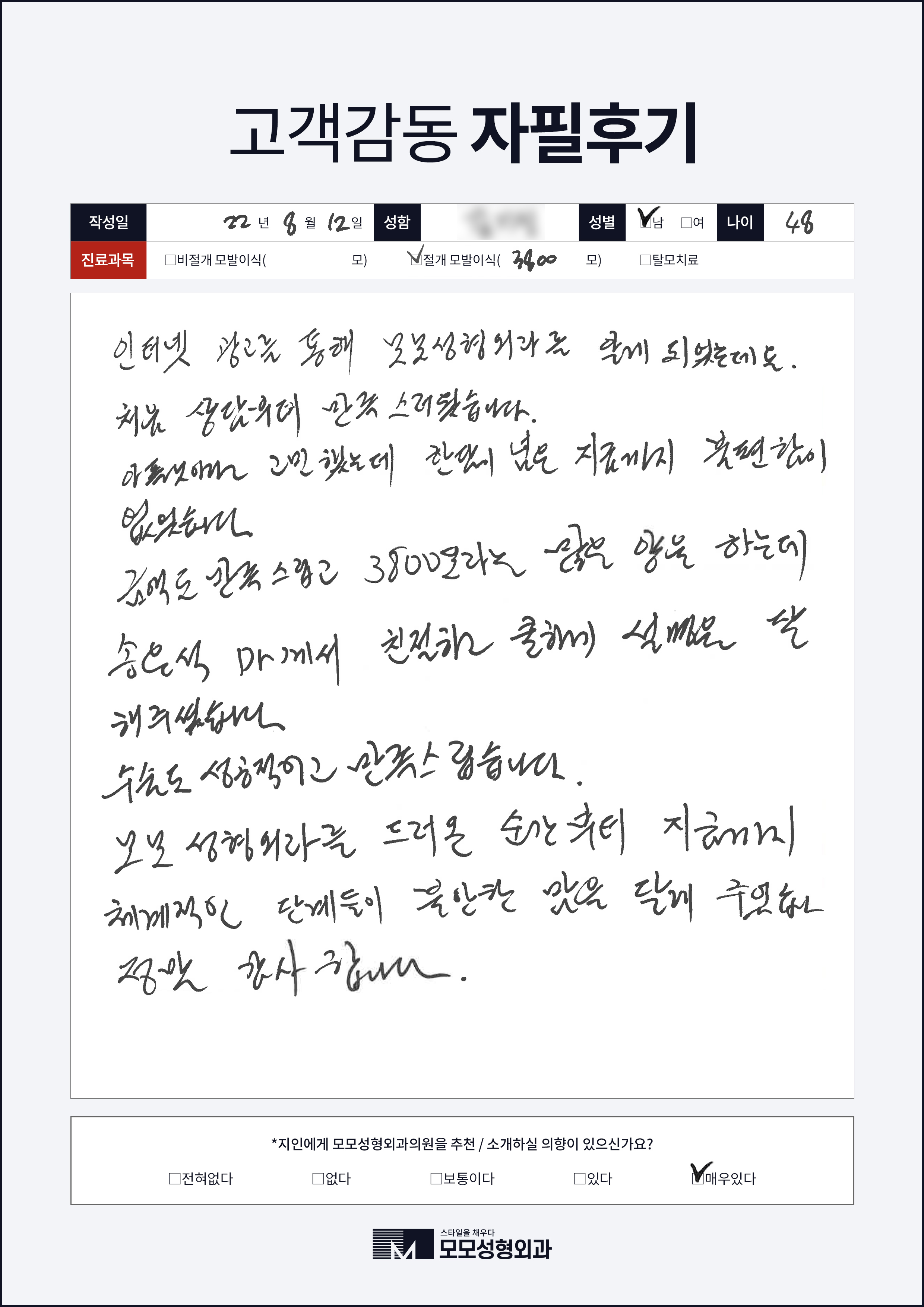 [40대]절개모발이식3000모, M자이마
