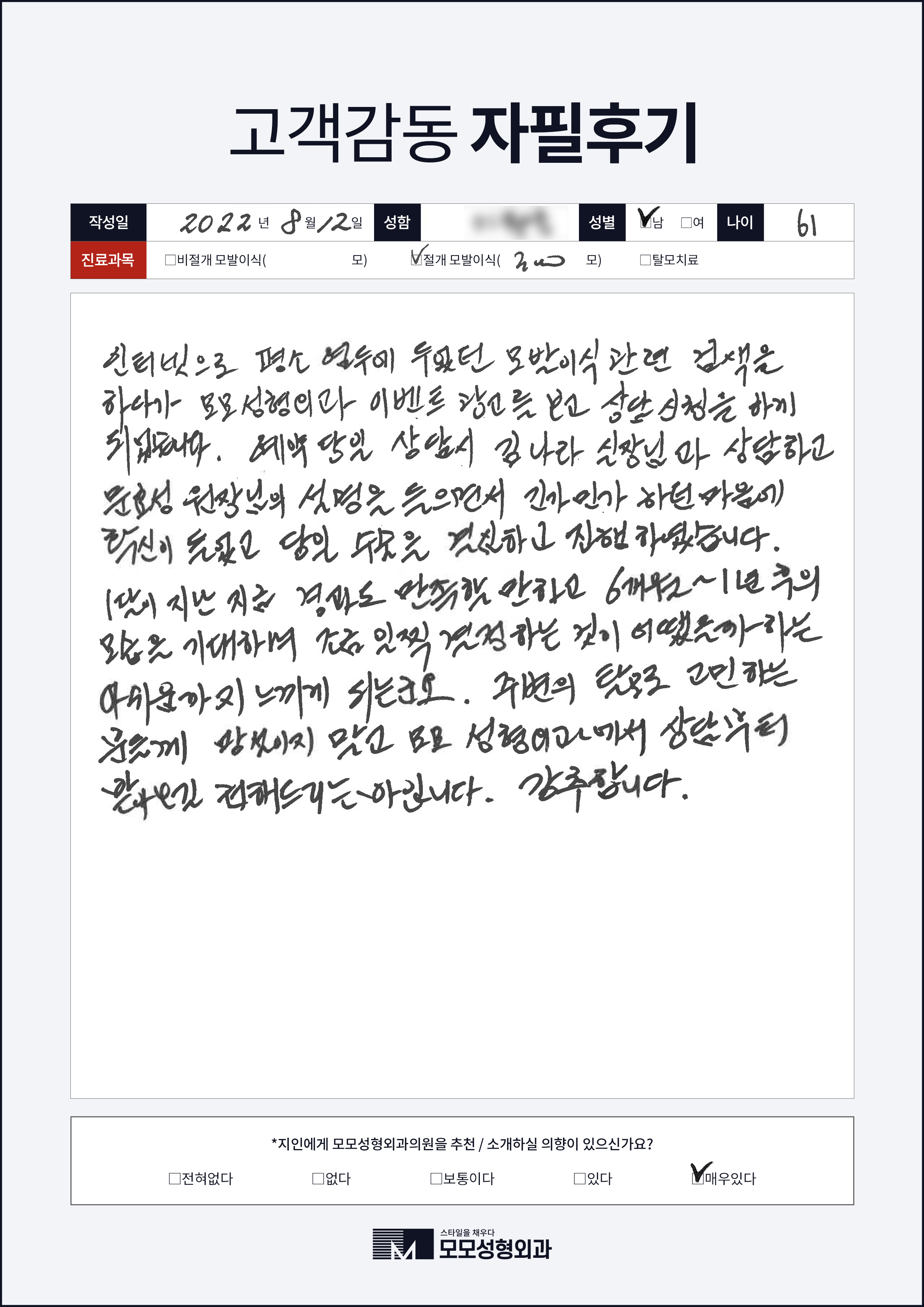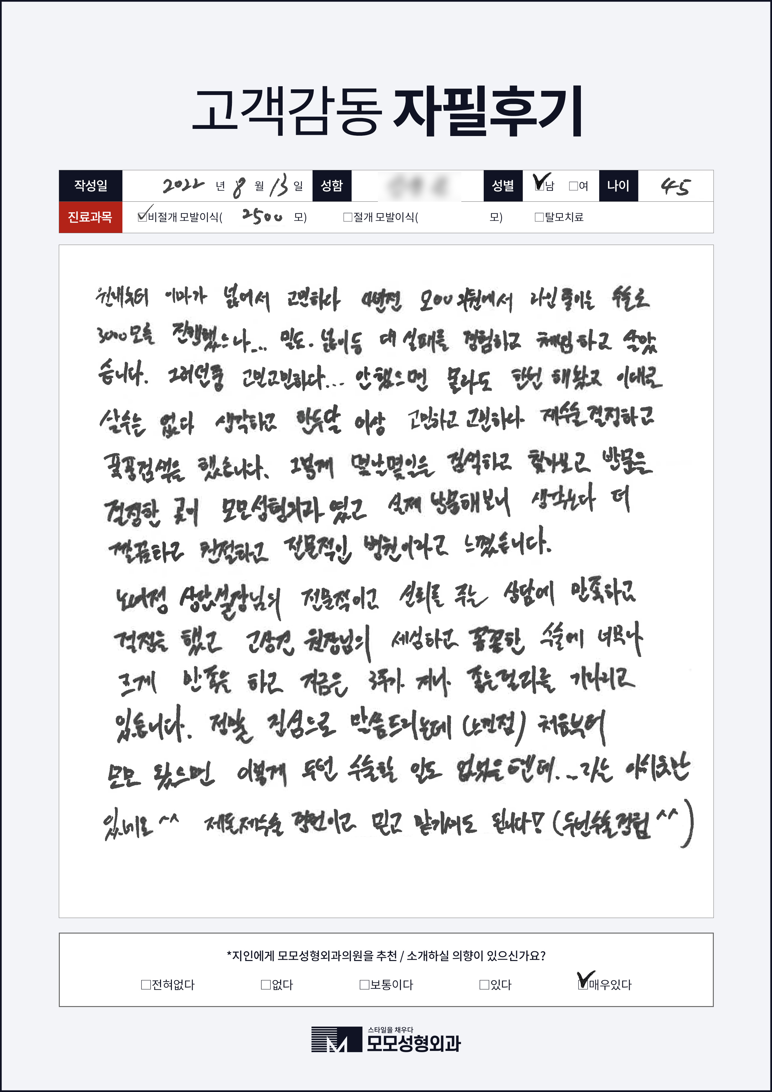 [40대]절개모발이식3000모, 높은M자이마