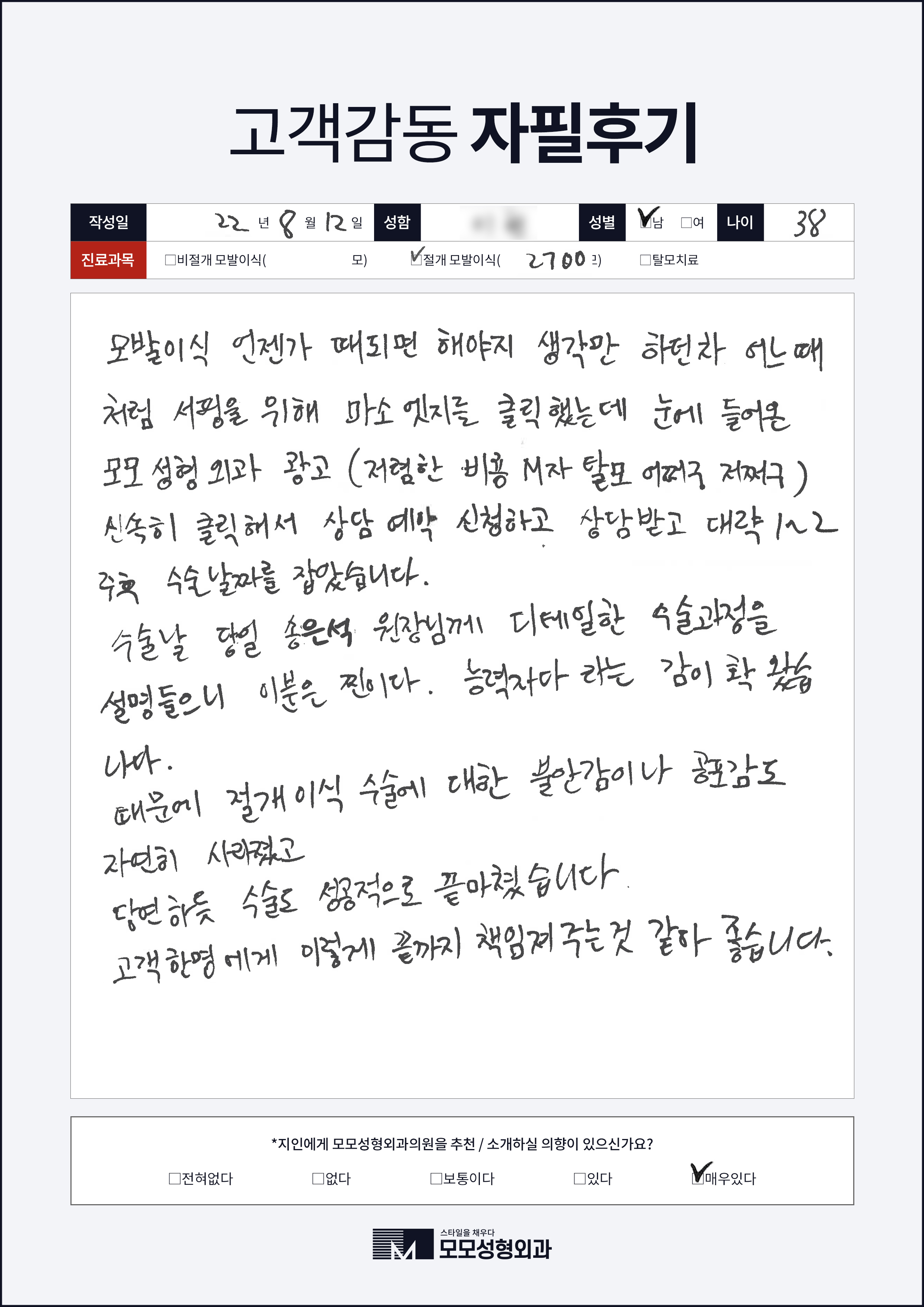 [30대]절개모발이식2000모, M자이마