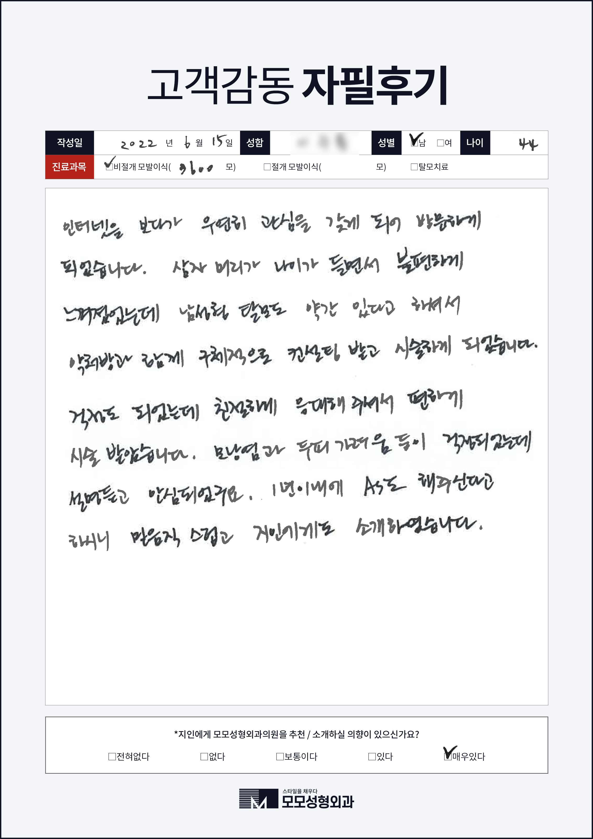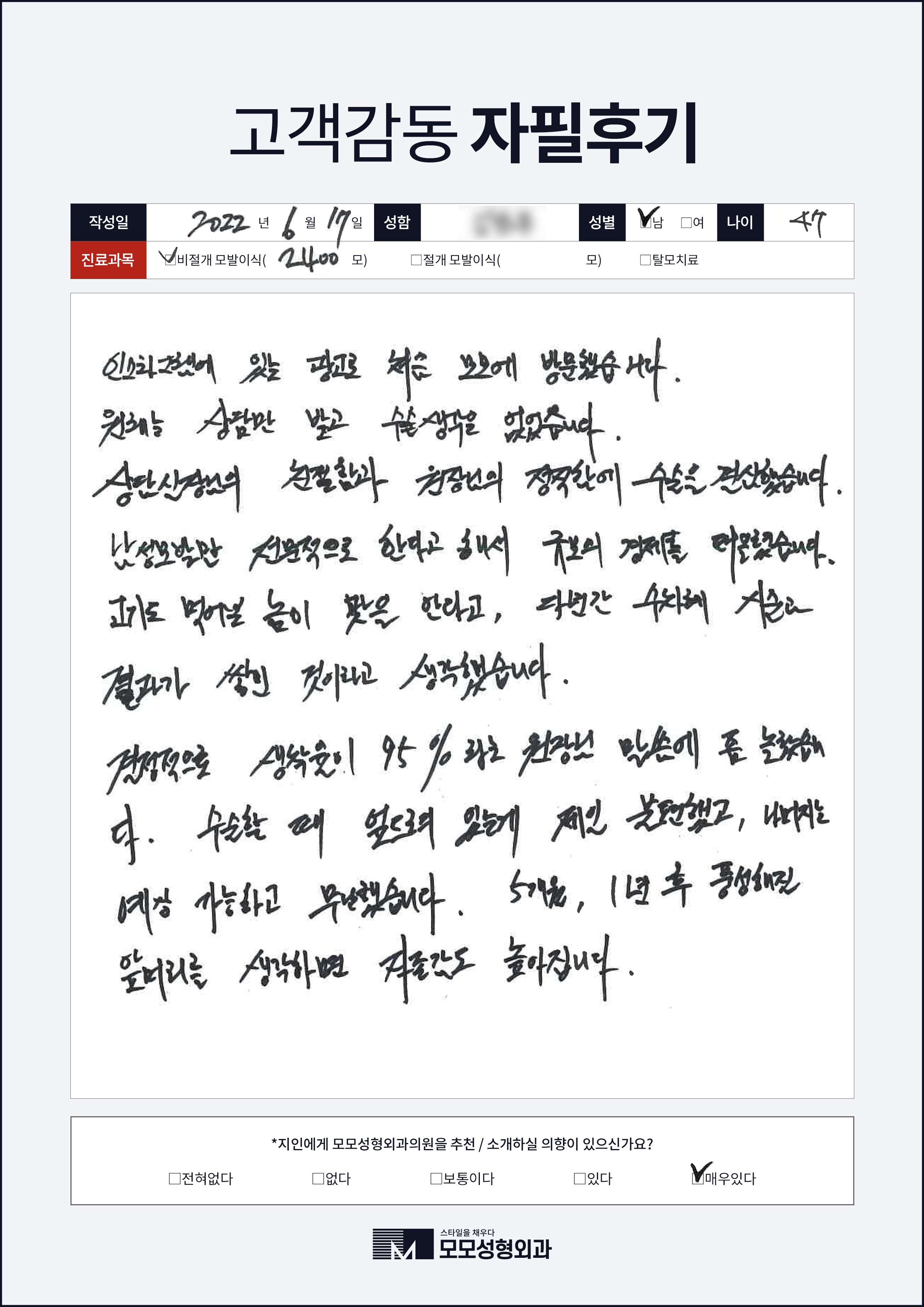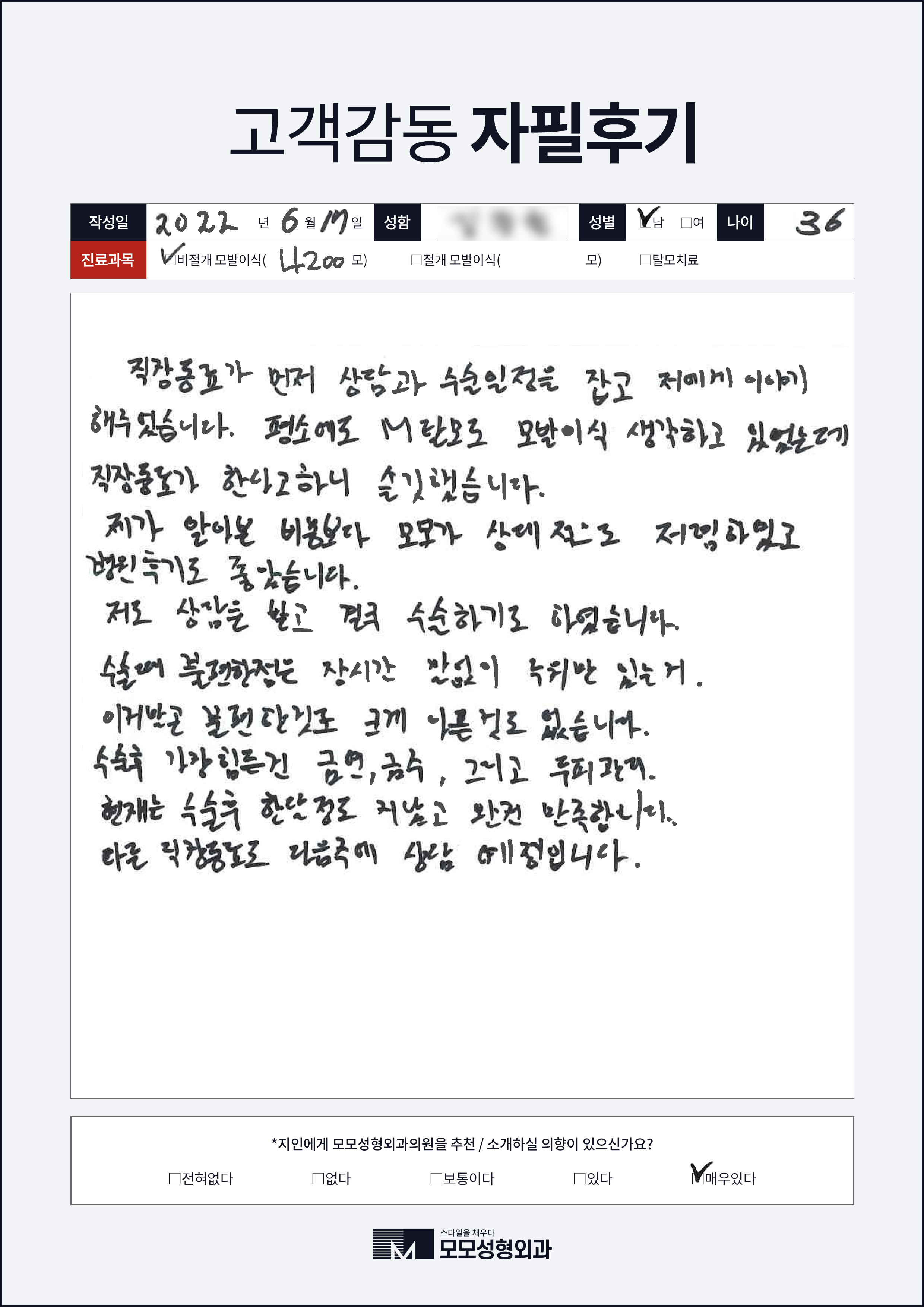 [40대]비절개모발이식3000모, M자이마