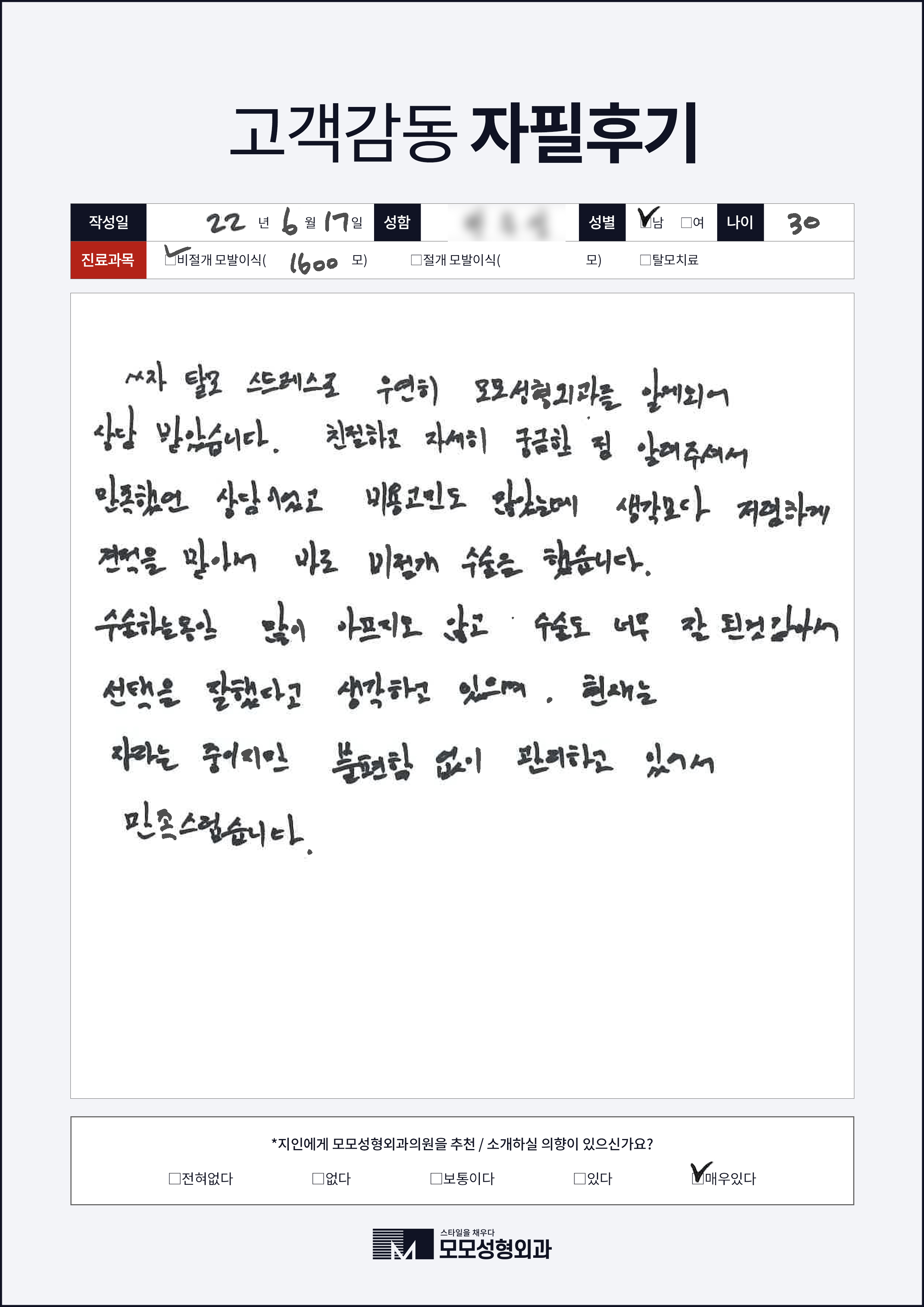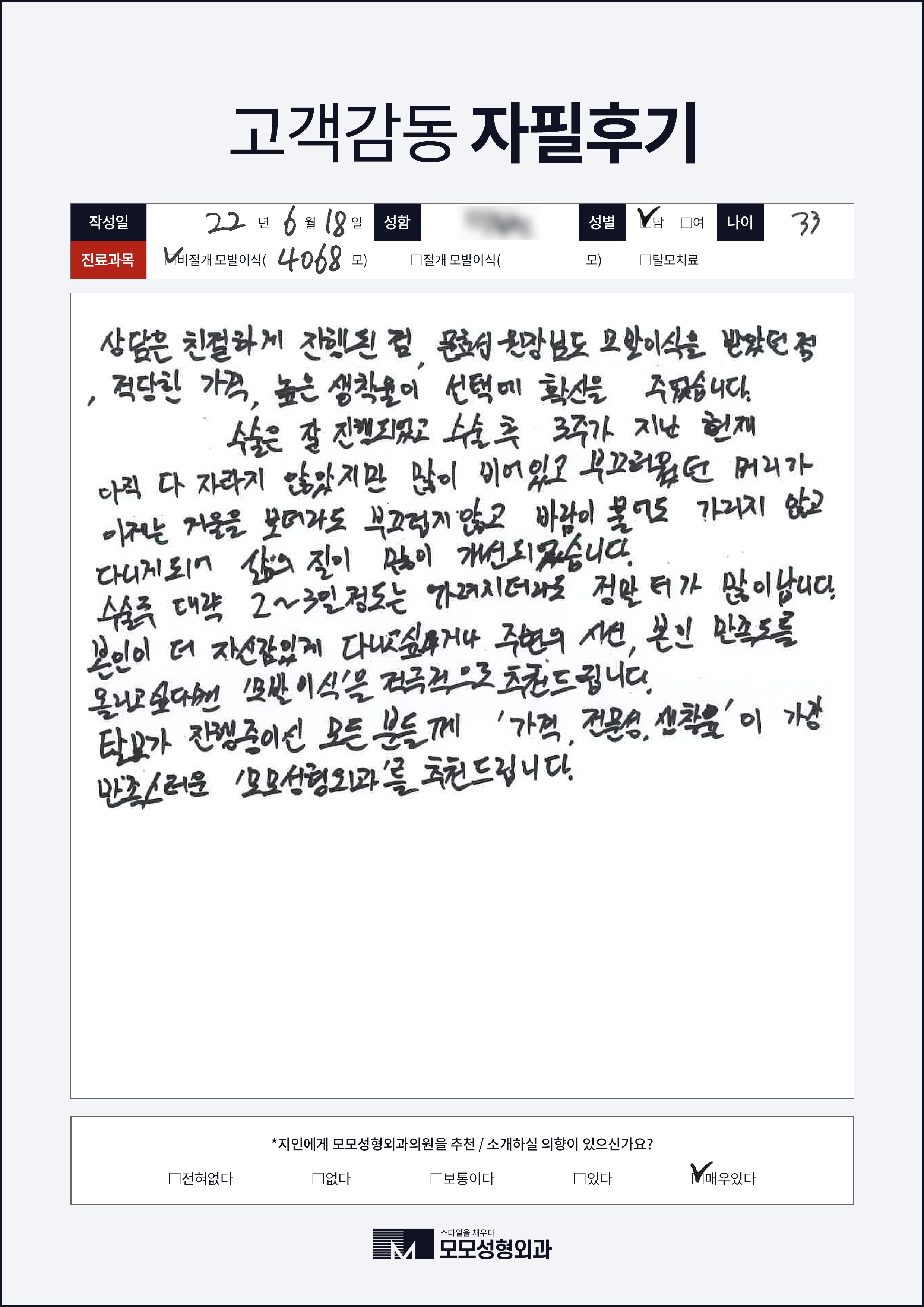 [30대]비절개모발이식4000모이상, M자이마