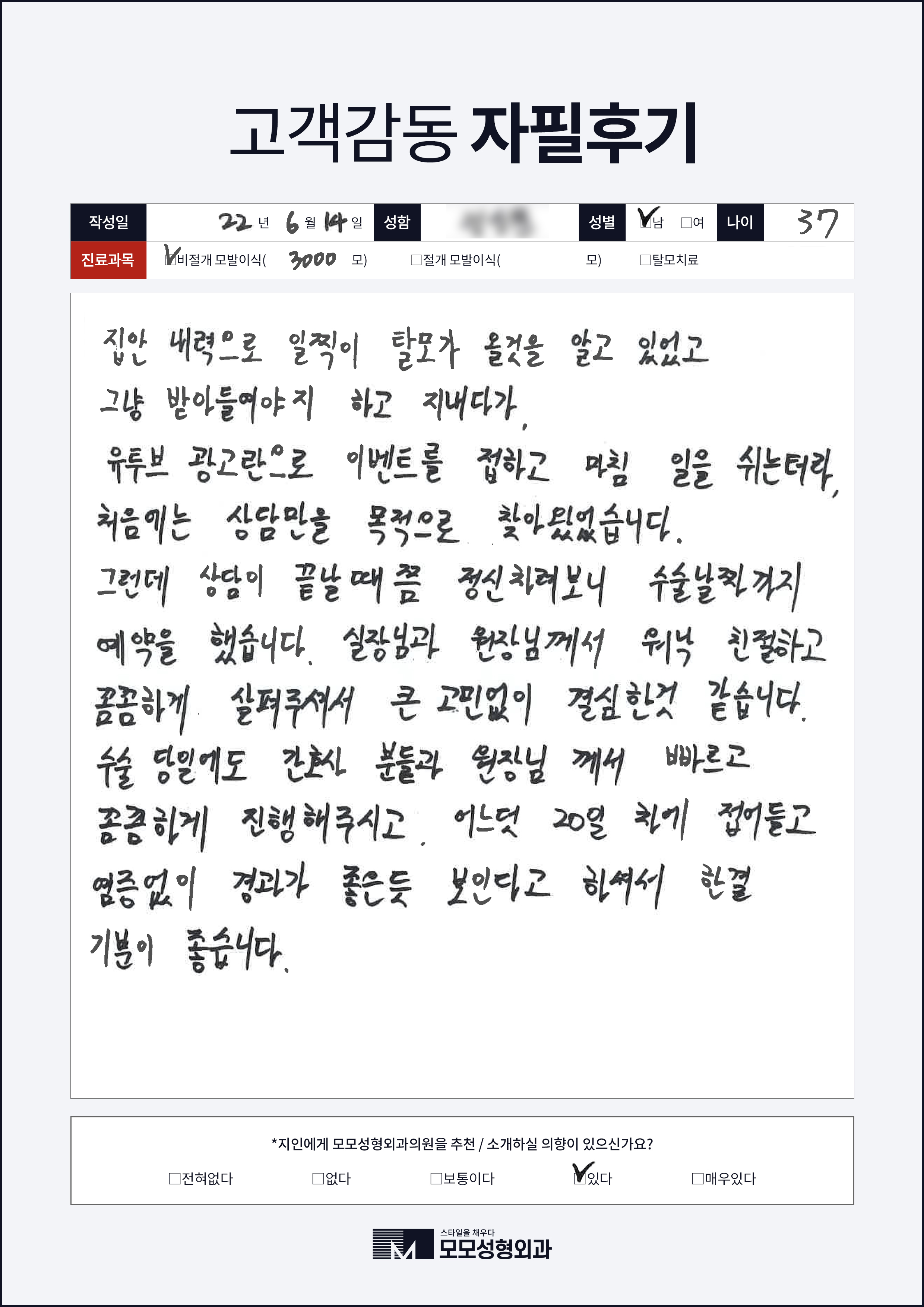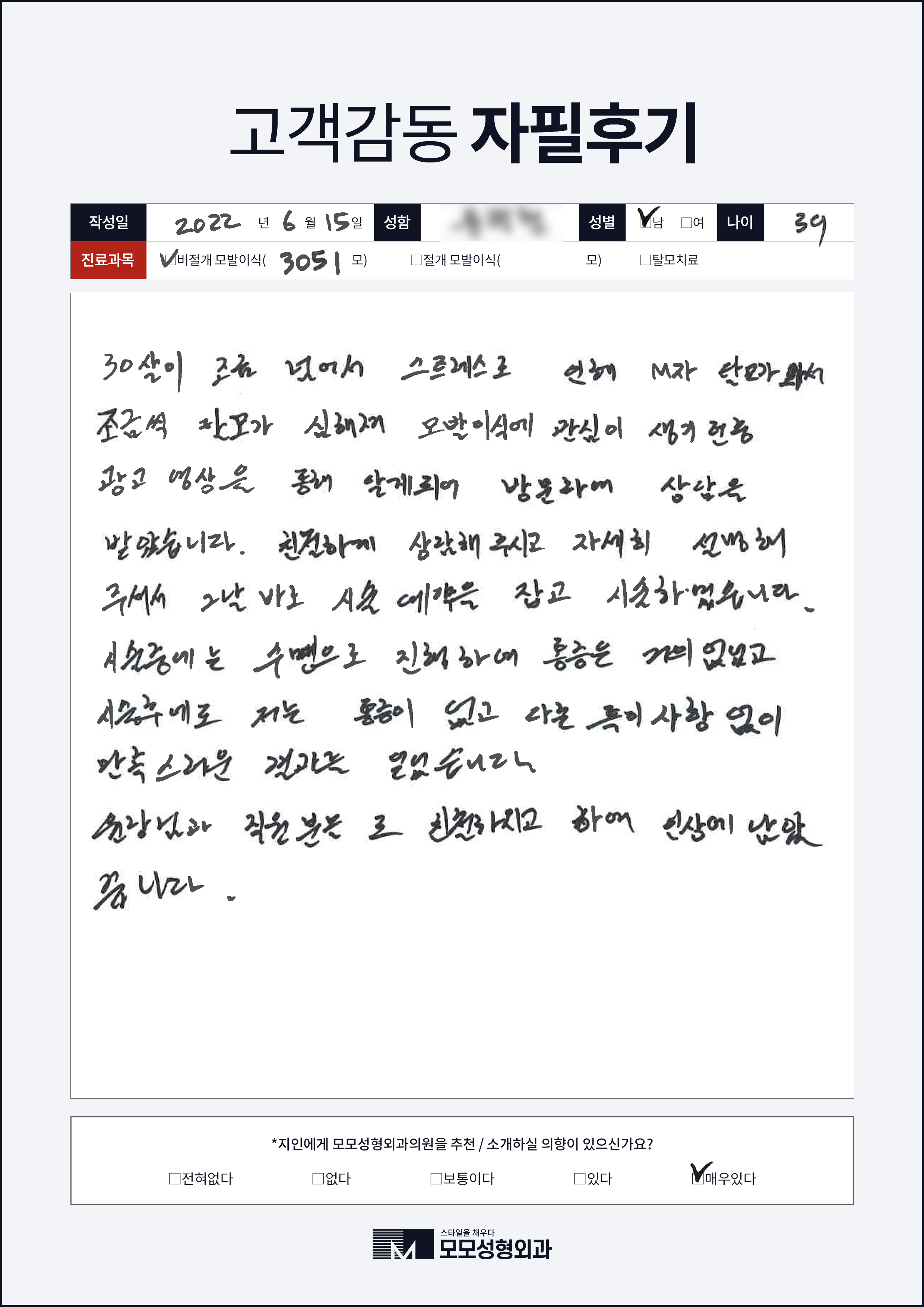 [30대]비절개모발이식3000모, M자이마