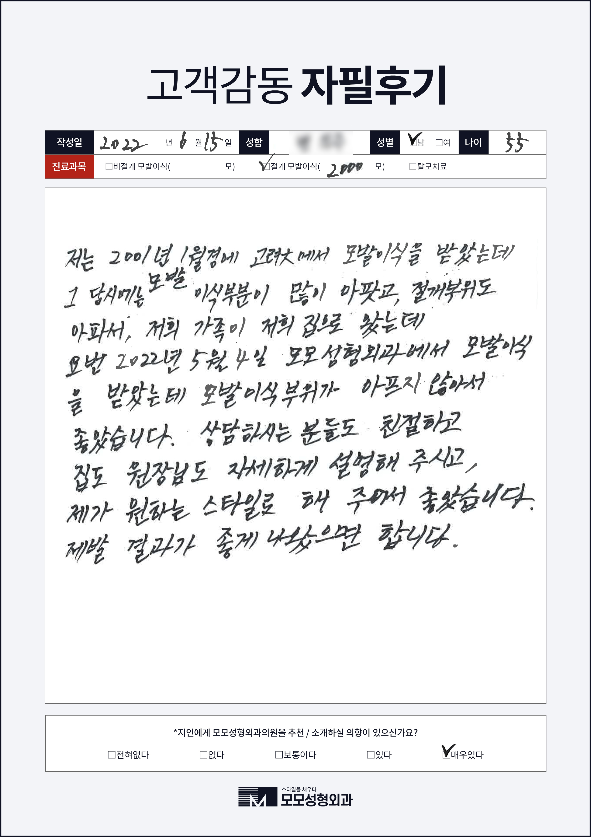 [50대이상]절개모발이식2000모, 여러부위