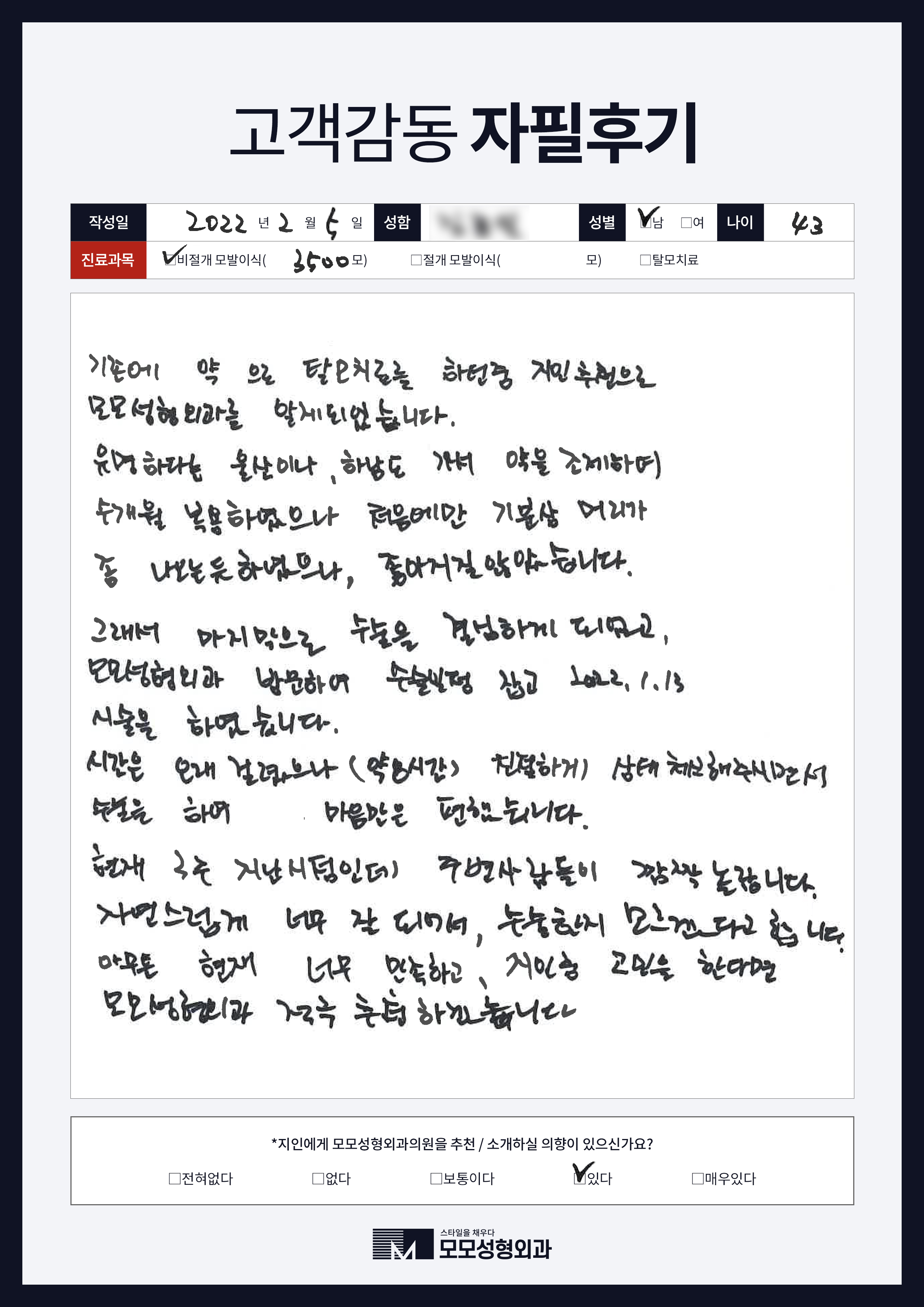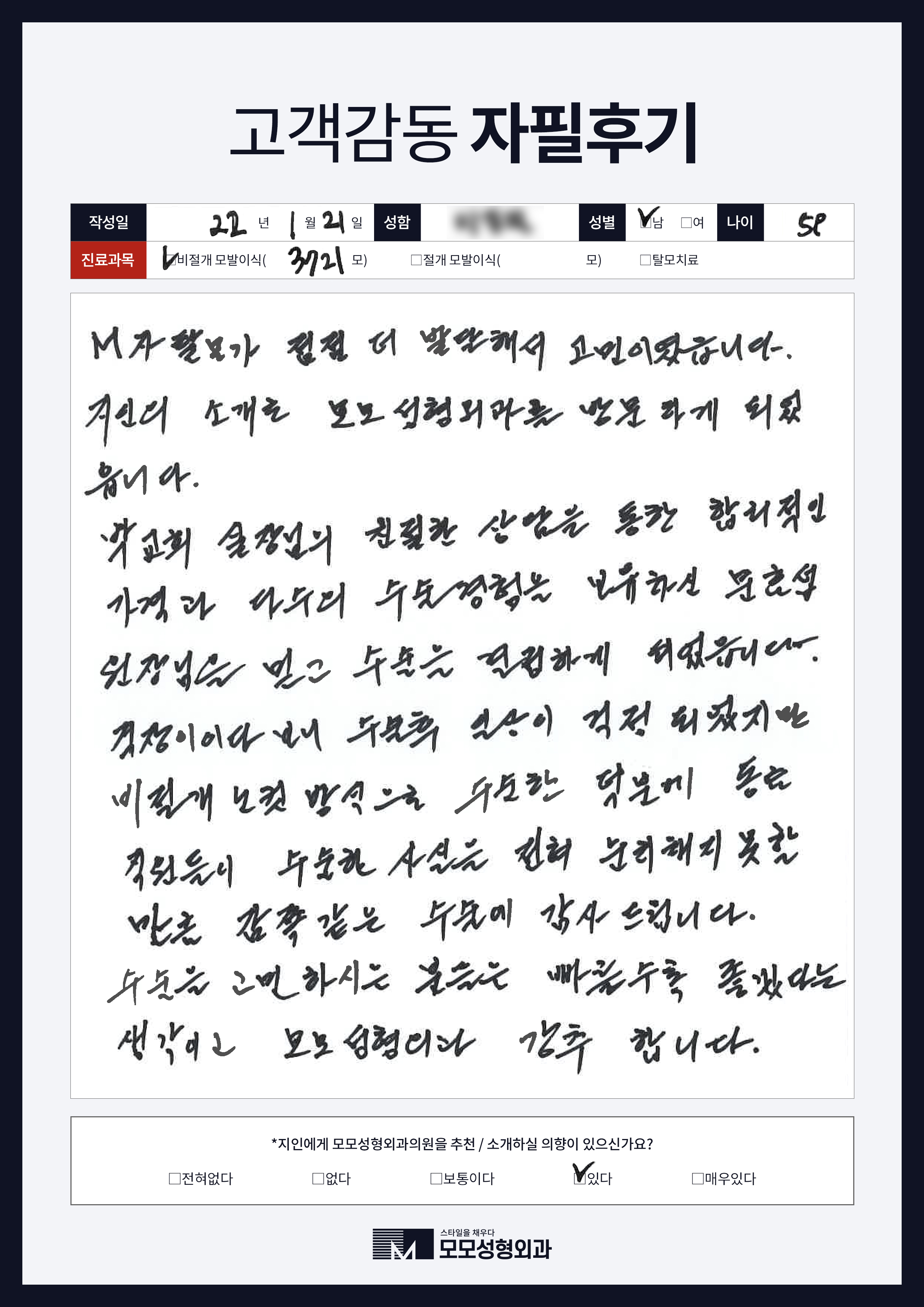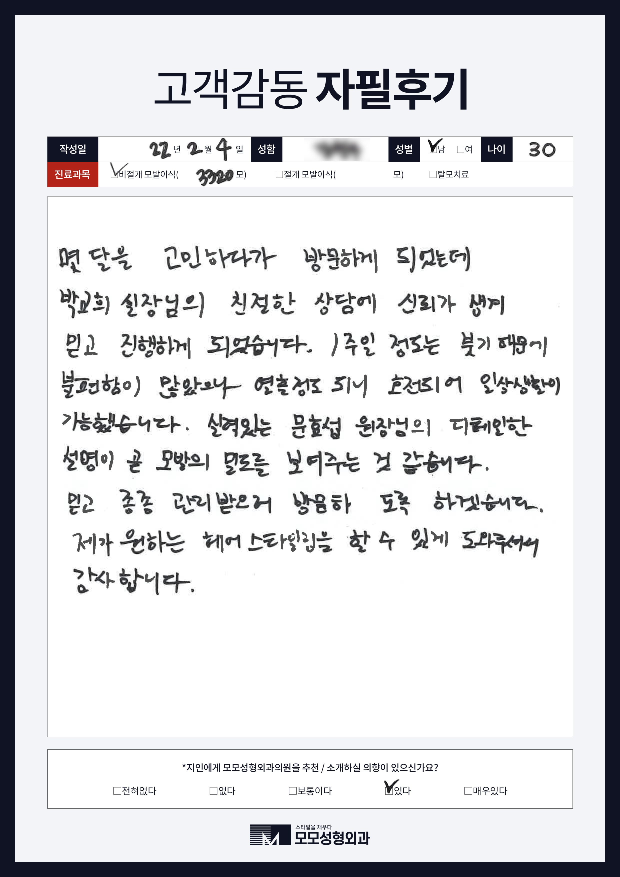 [40대]비절개모발이식3000모, M자이마