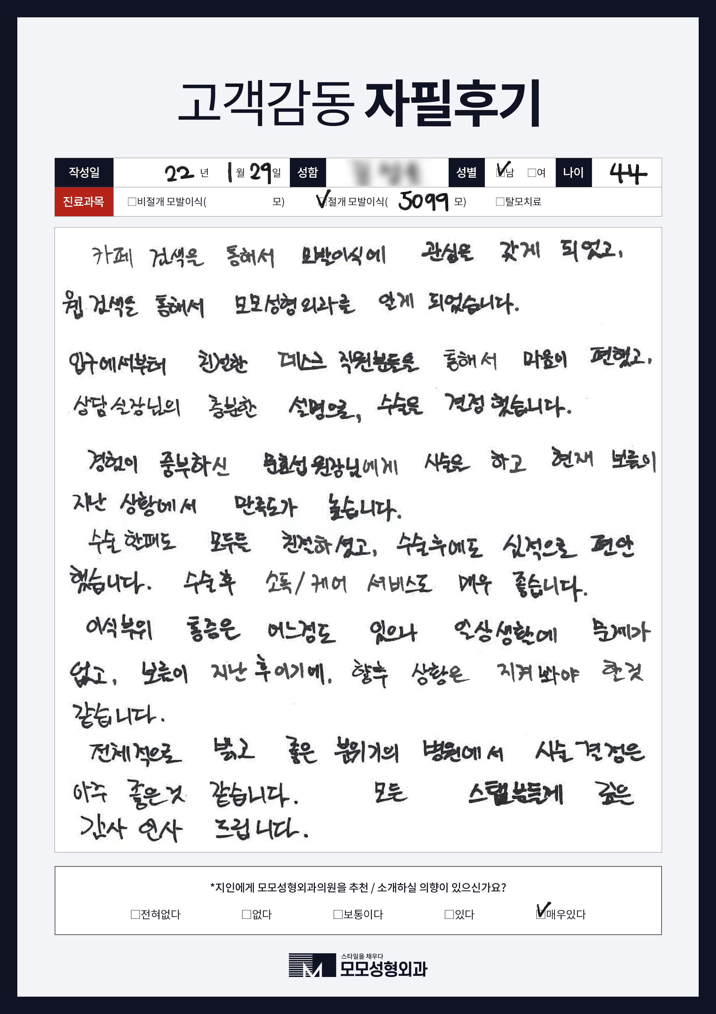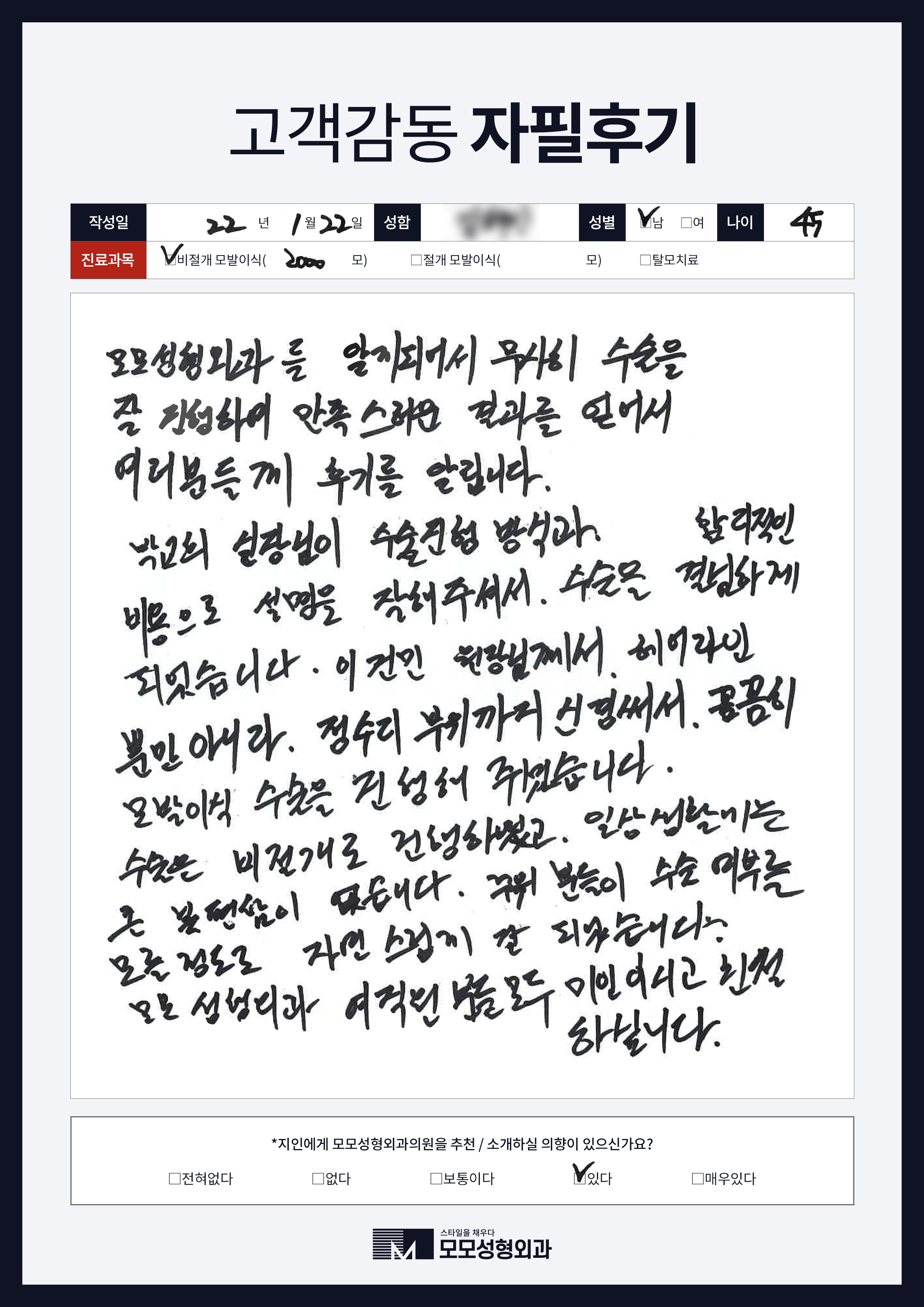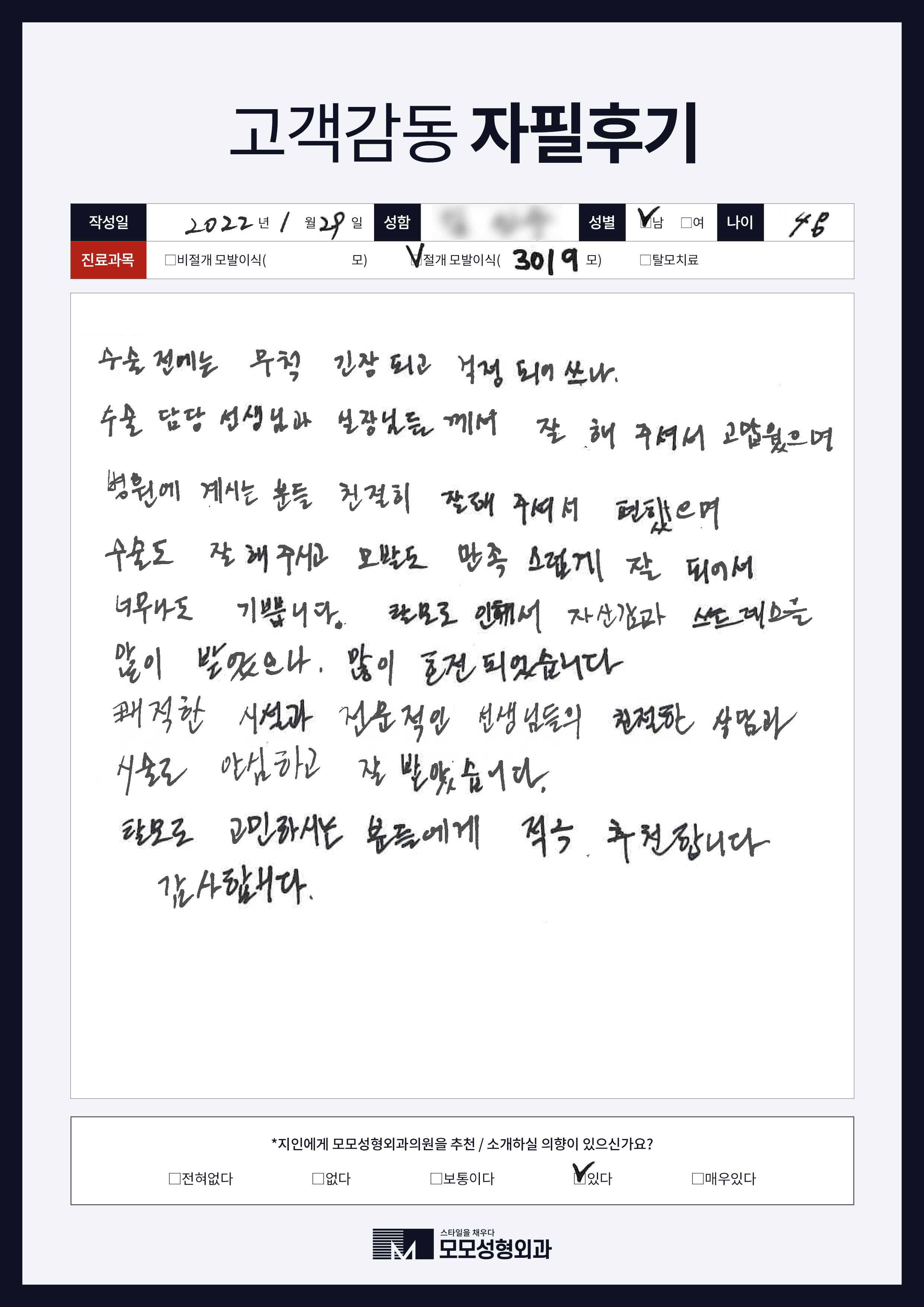 [40대]비절개모발이식3000모, M자이마