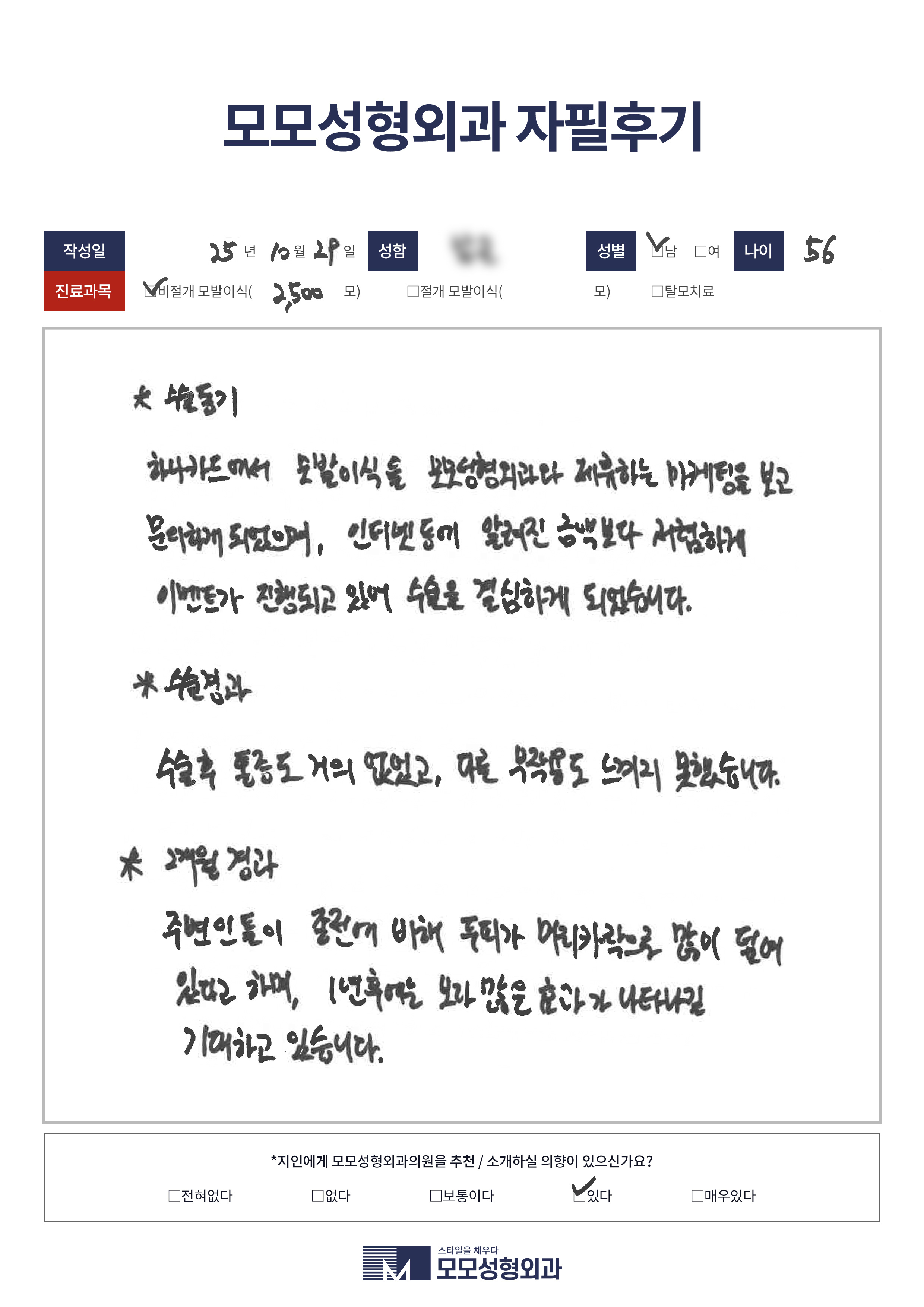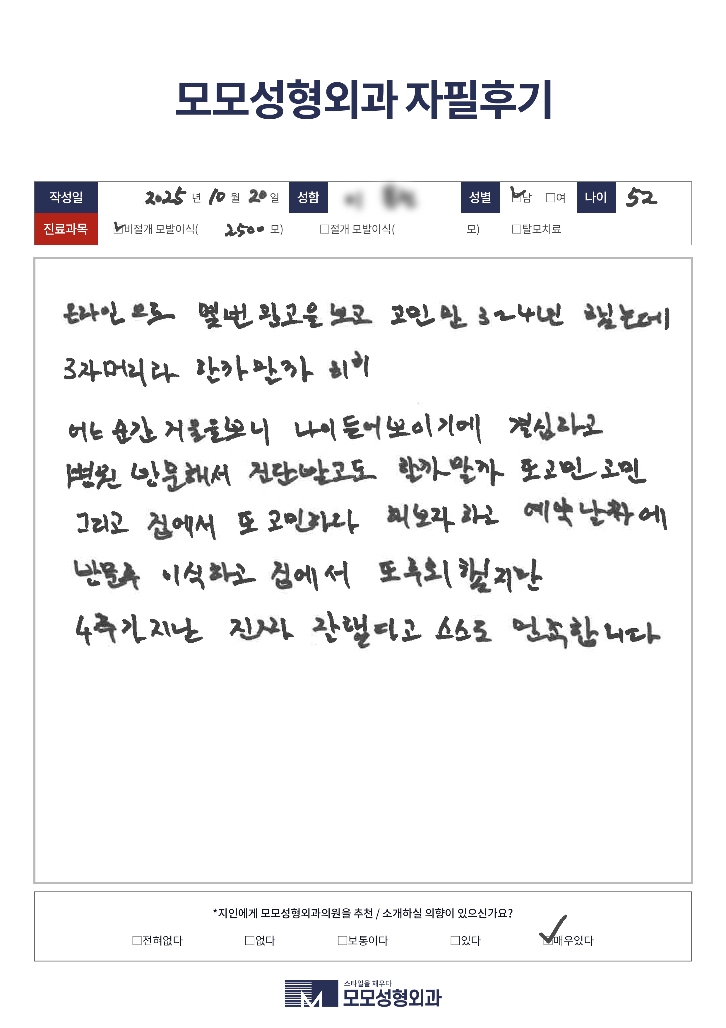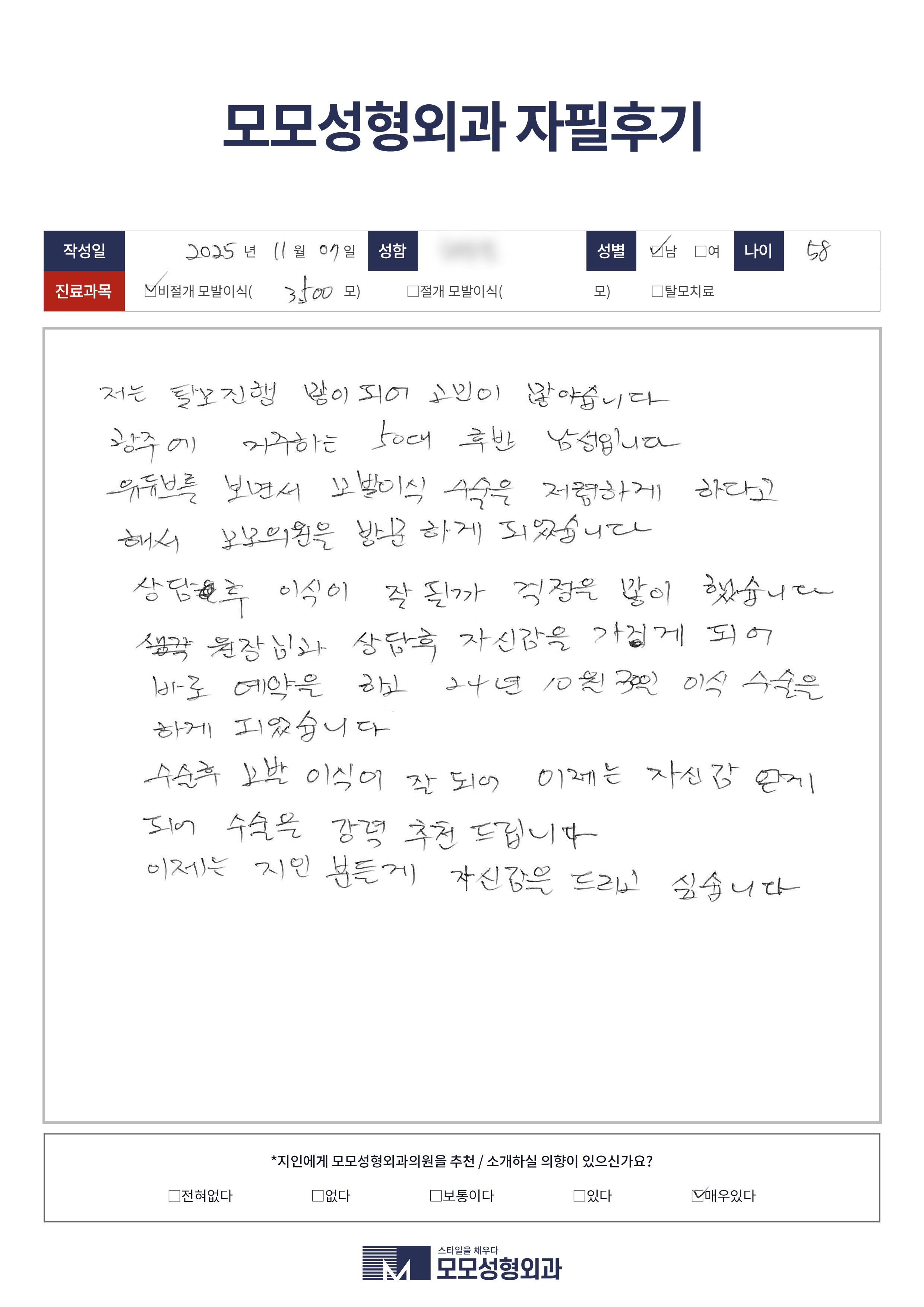 [50대]비절개모발이식2500모, M자이마