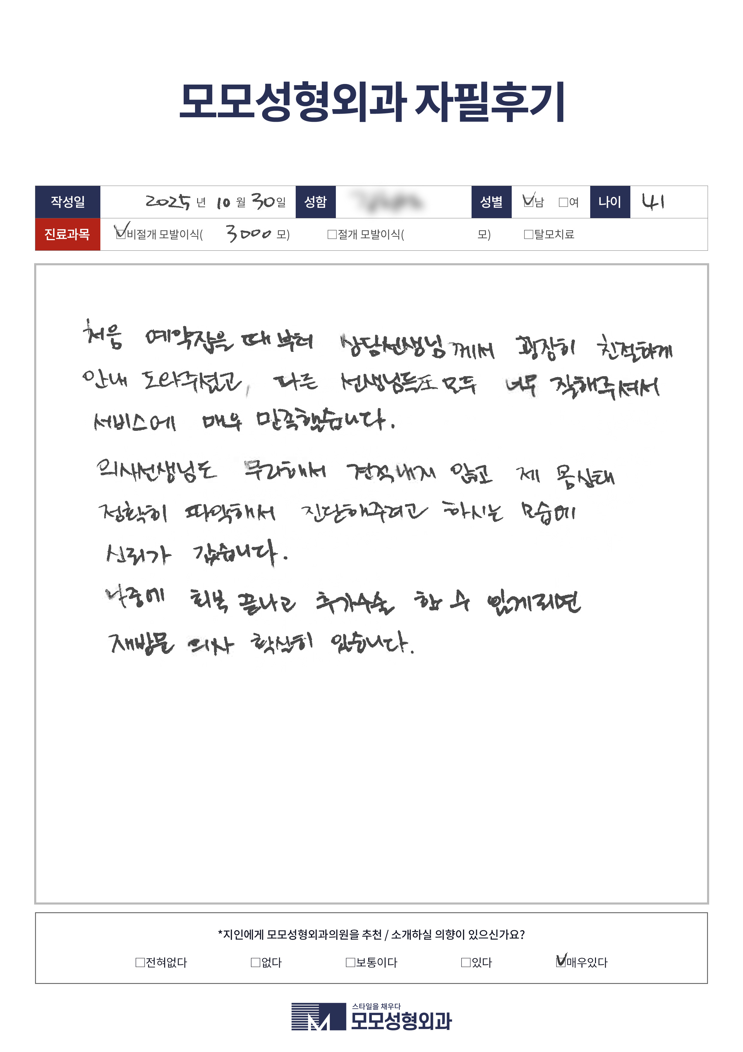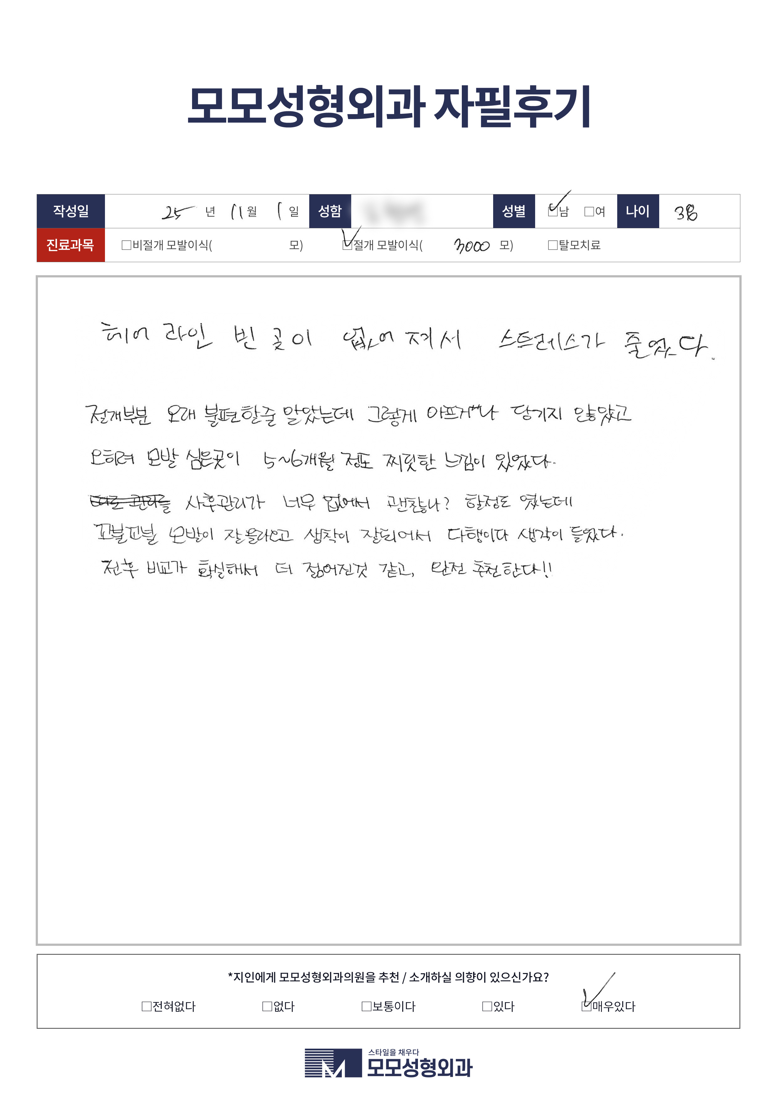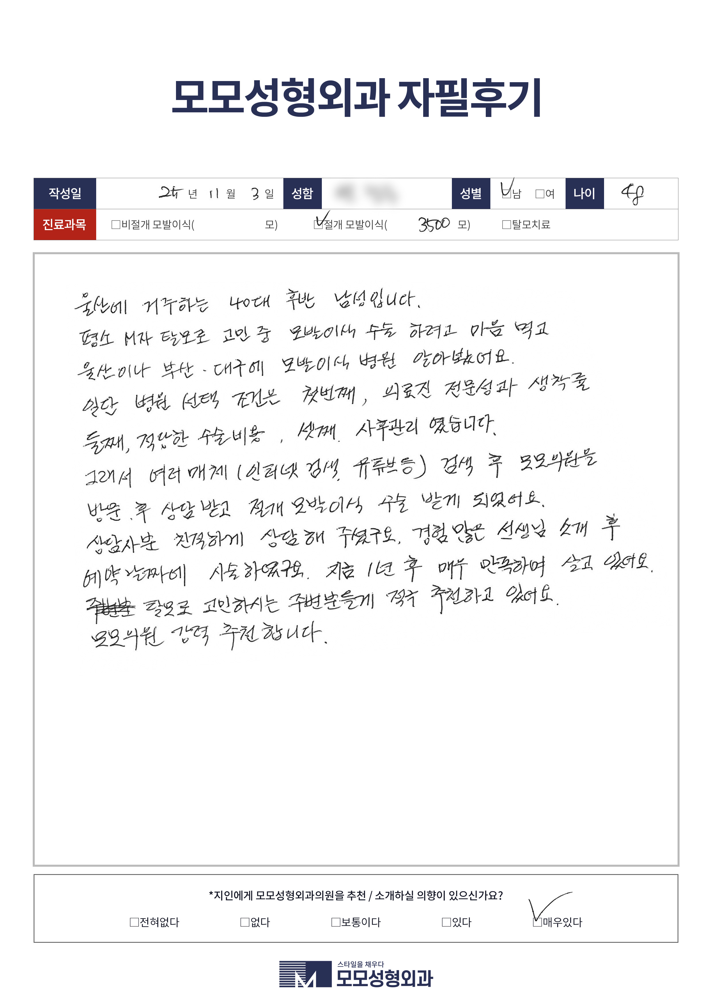 [40대]비절개모발이식3000모, M자이마