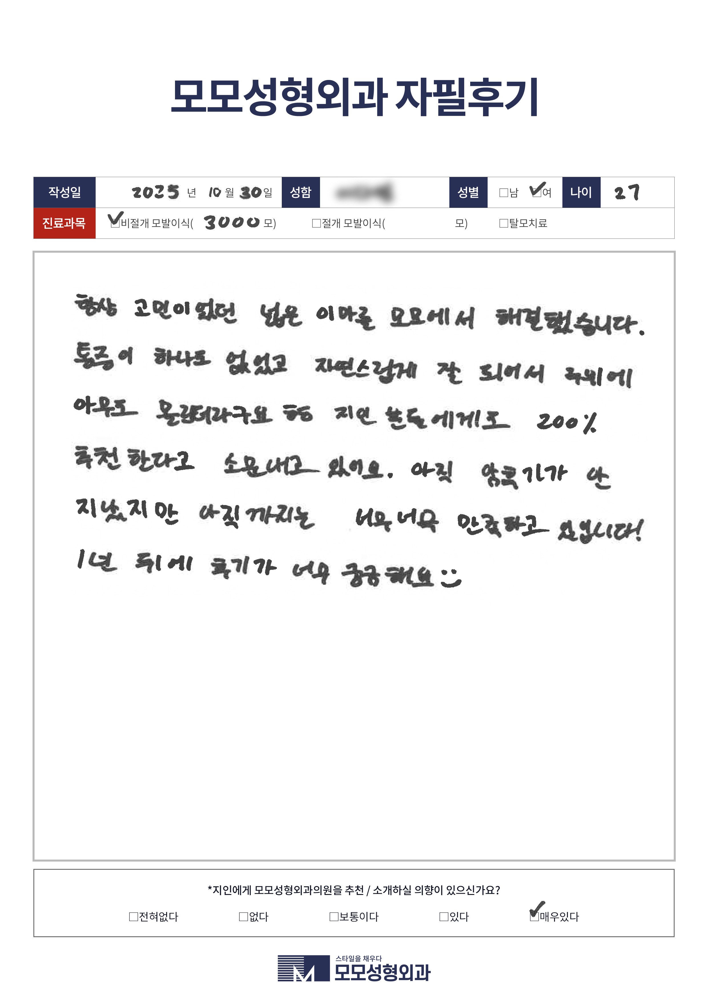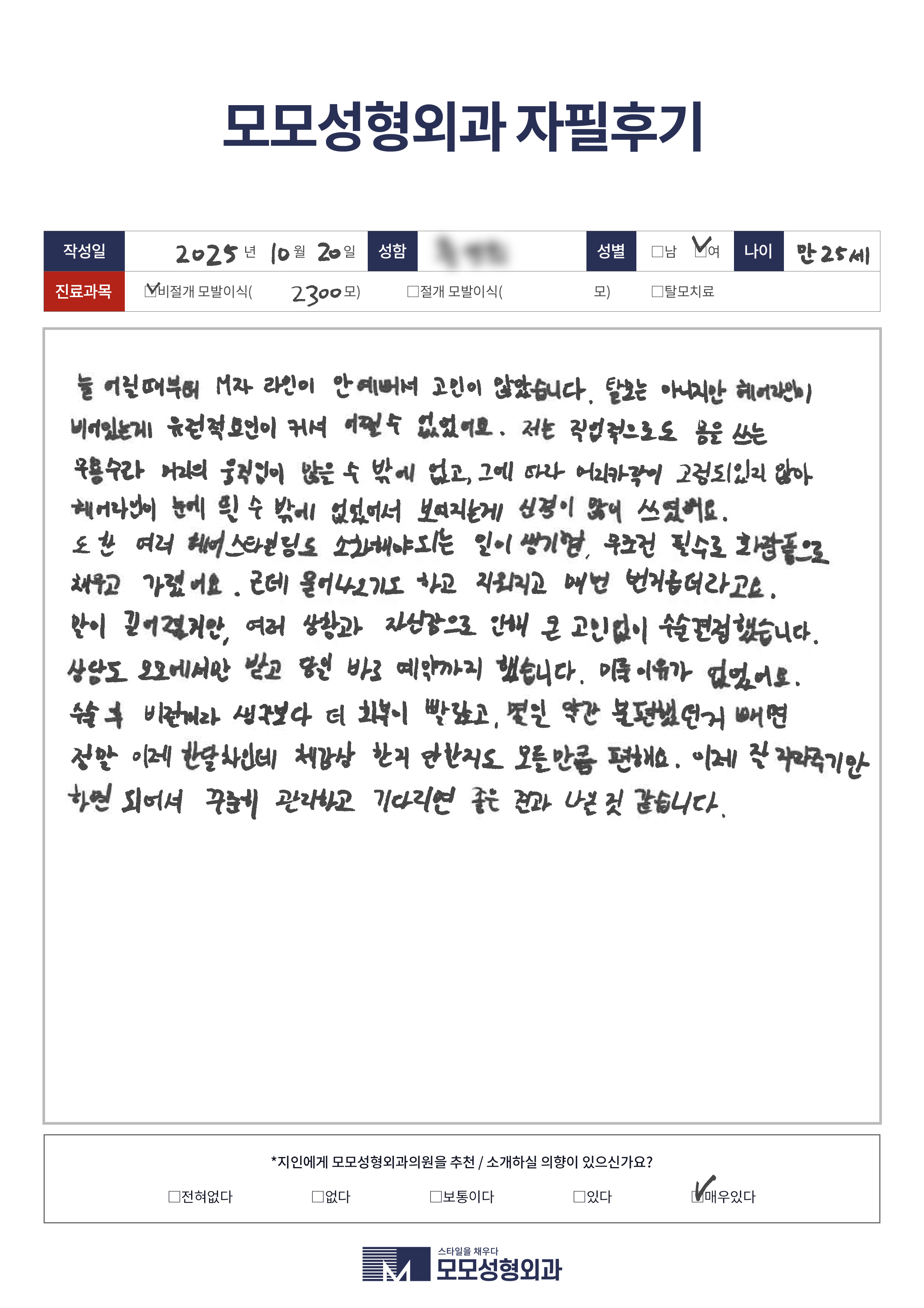 [20대]비절개모발이식2500모이상, M자이마