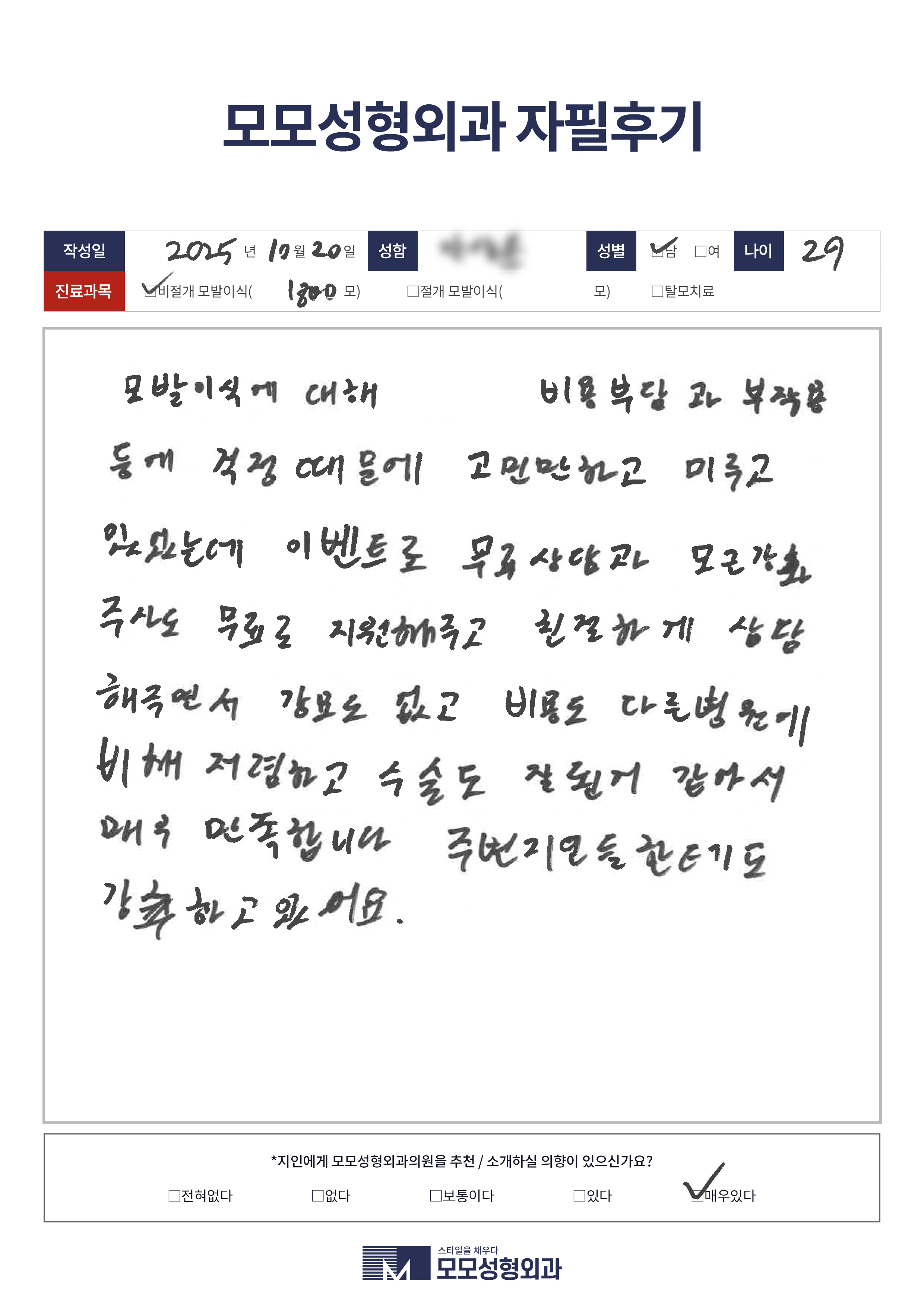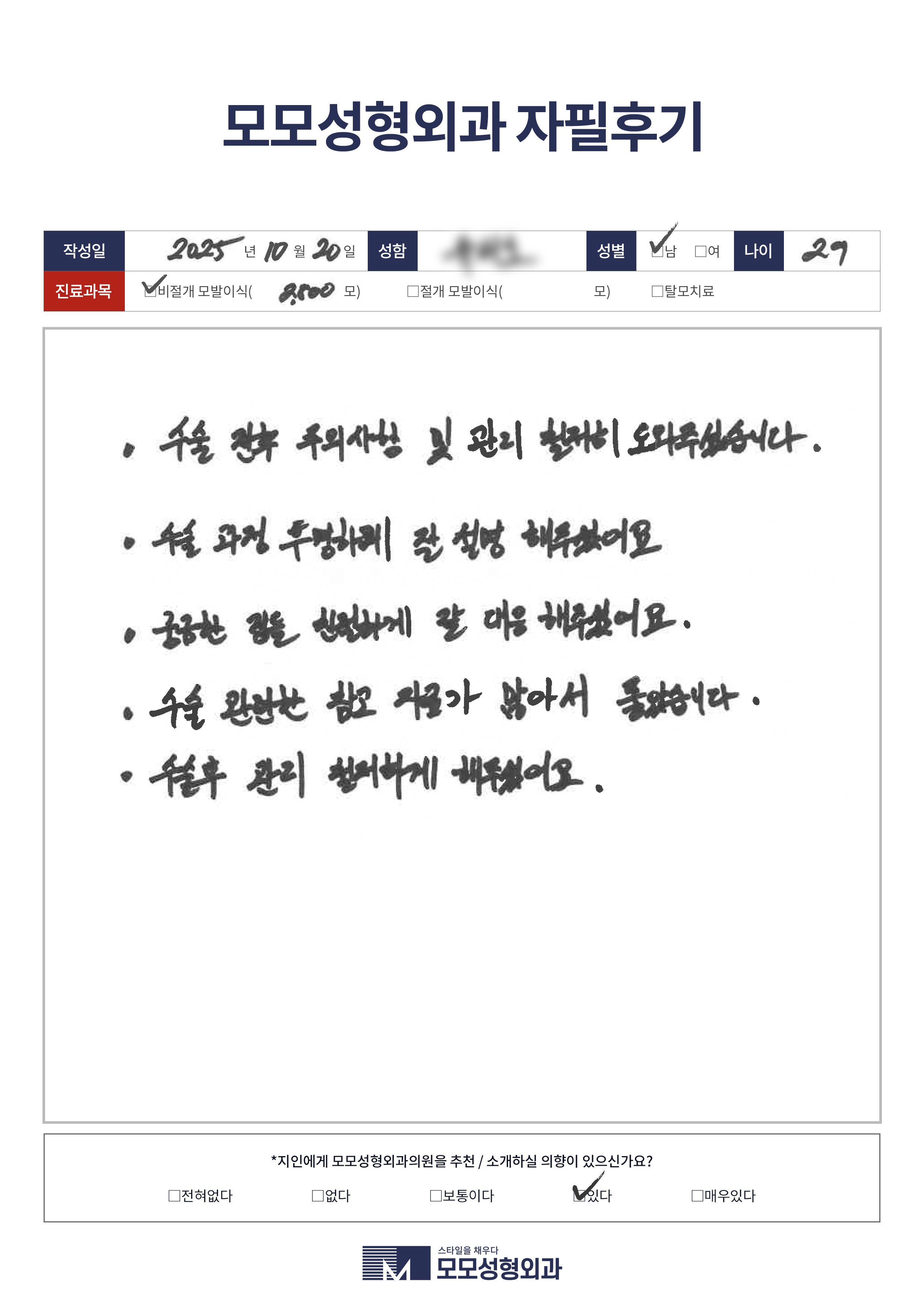 [20대]비절개모발이식1500모이상, M자이마
