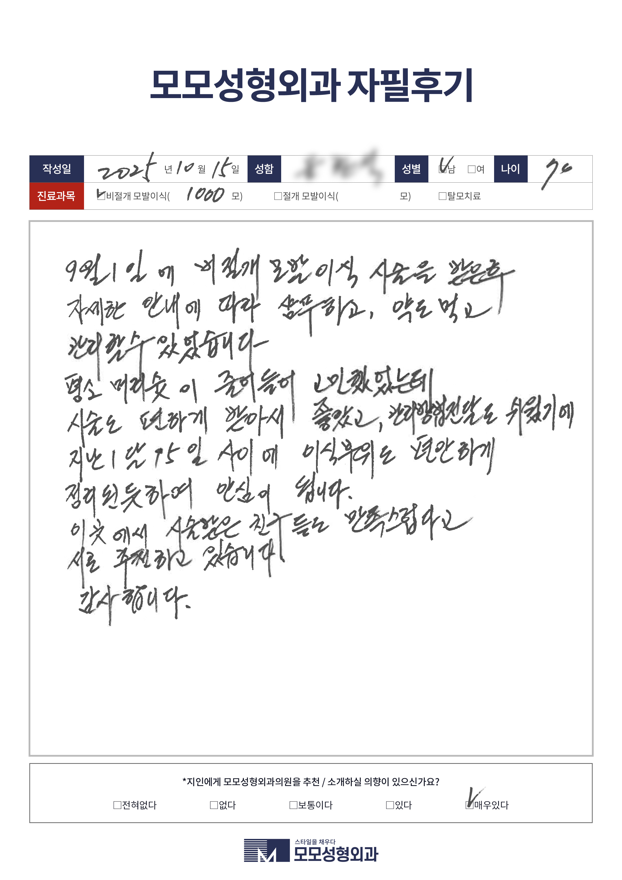 [30대]비절개모발이식1500모이상, M자이마