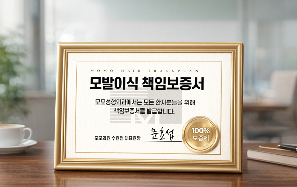 모발이식 수술 후 만족스러운 수술 결과를 보장하기 위해 모발이식 생착을 책임지고 보장합니다. 수술 전과 비교하여 생착율 및 이식밀도 고객 불만족 시 리터칭 수술을 무료로 해드립니다.