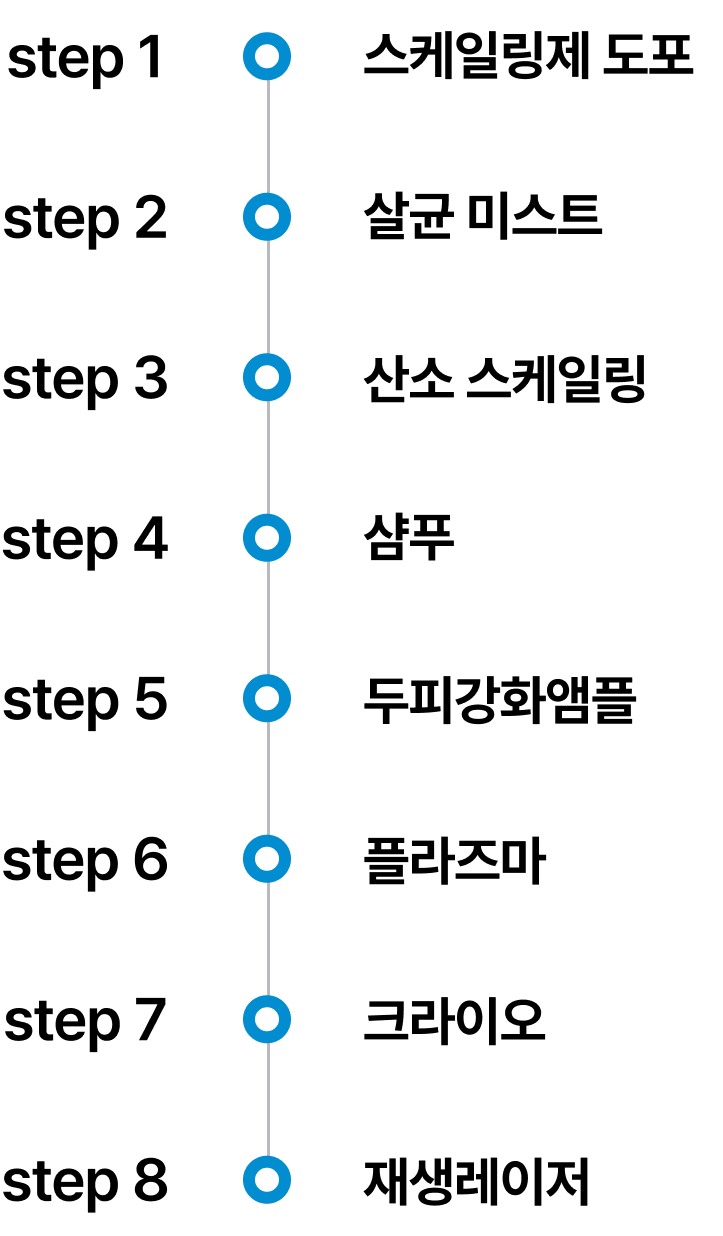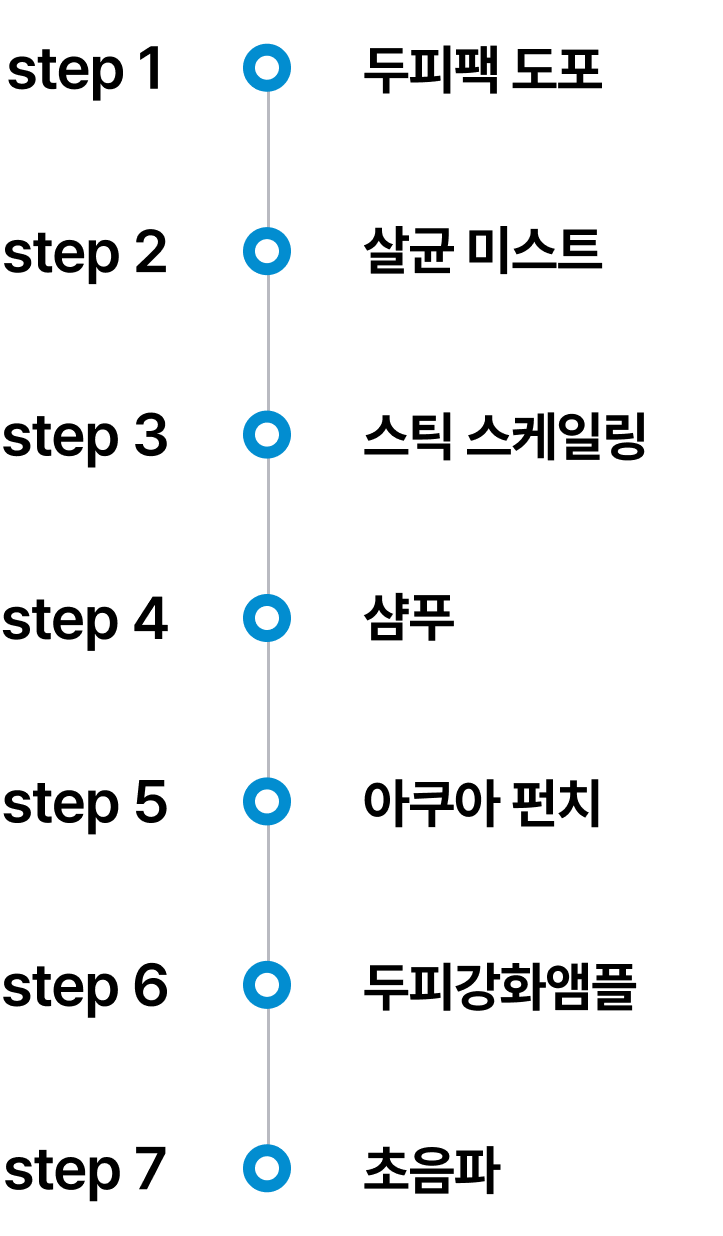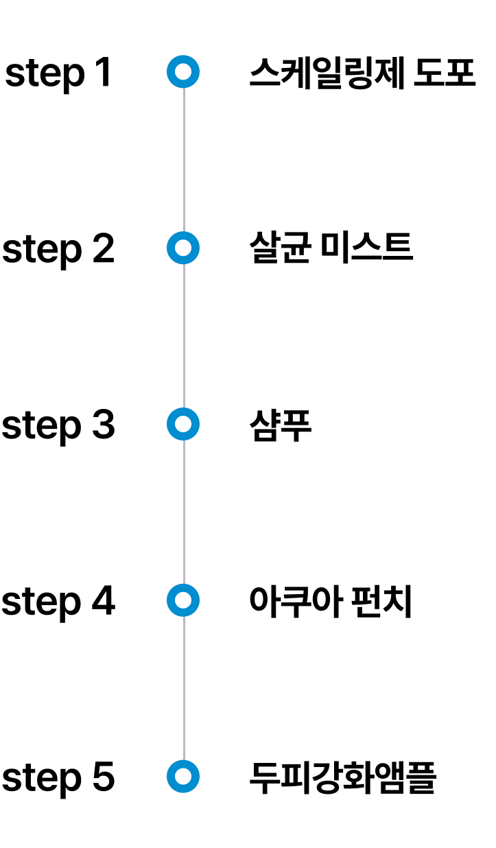 피부 자극을 최소화할 수 있는 다양한 기기와 제품을 조합해 두피 장벽을 강화하고 건강한 두피로 이끌어 냅니다.